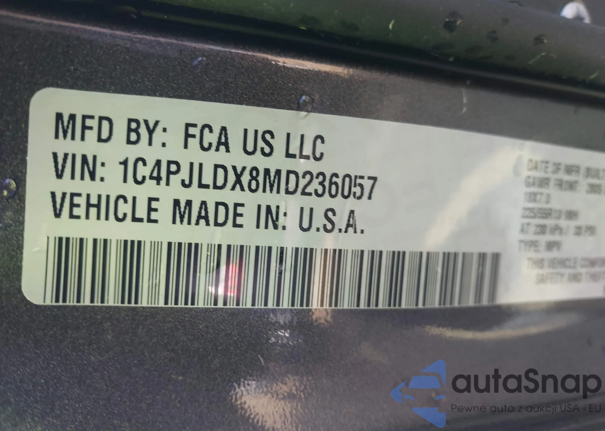 • VIN 1C4PJLDX8MD236057