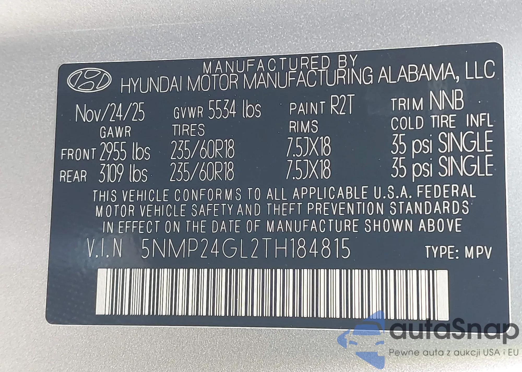 • VIN 5NMP24GL2TH184815