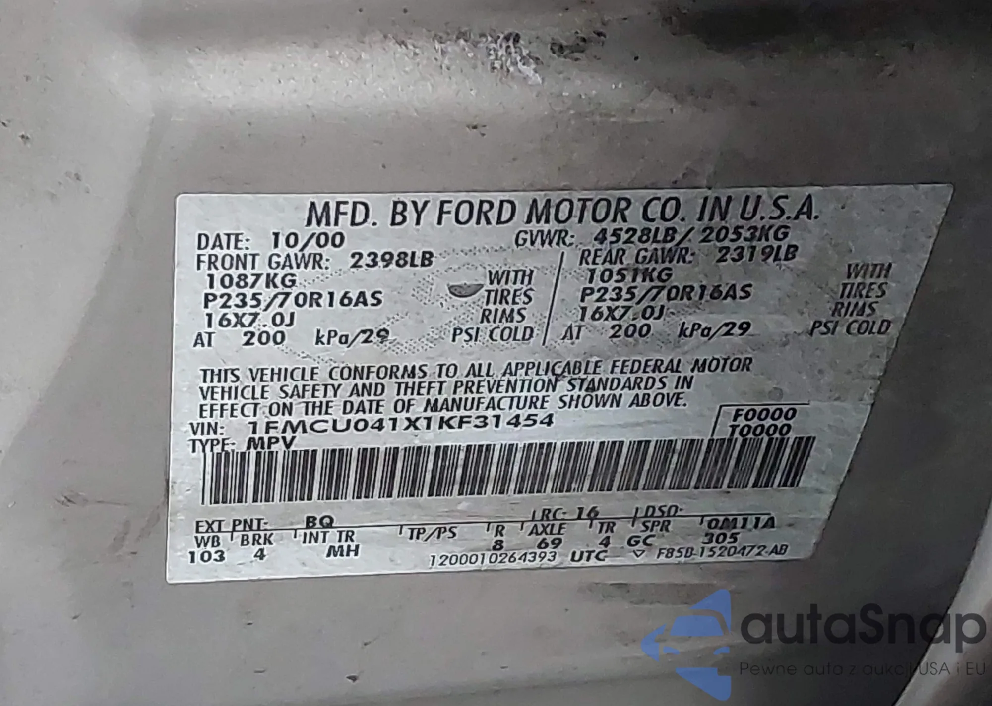 • VIN 1FMCU041X1KF31454