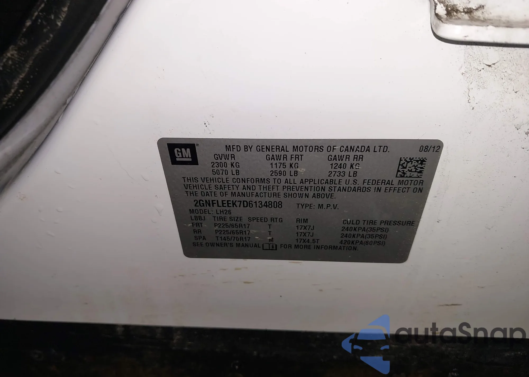 • VIN 2GNFLEEK7D6134808