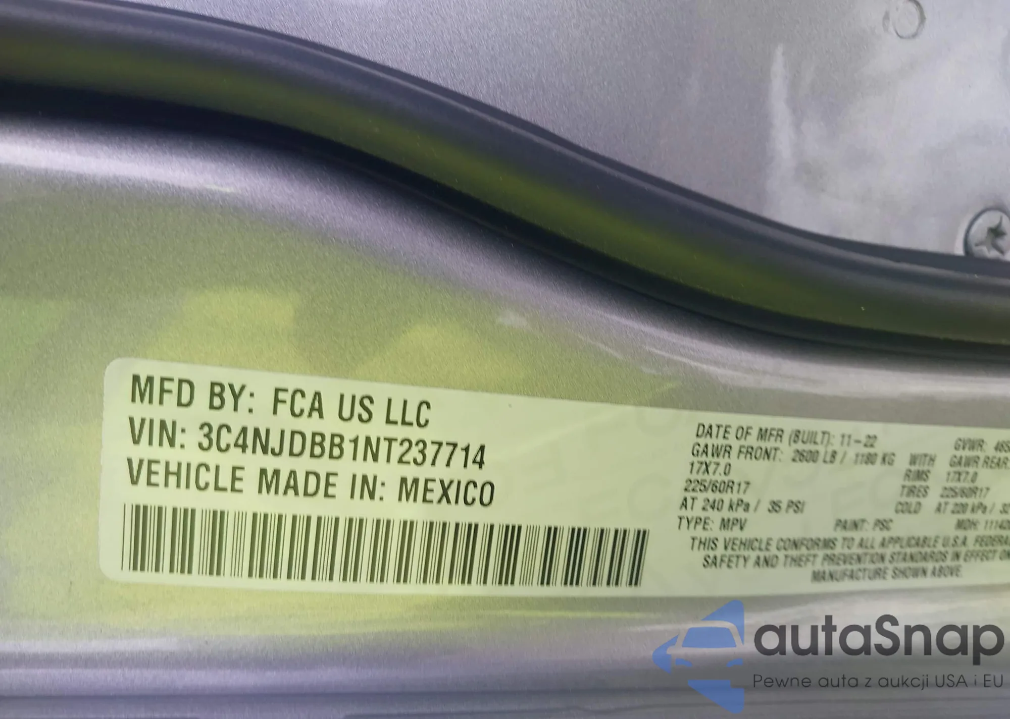 • VIN 3C4NJDBB1NT237714