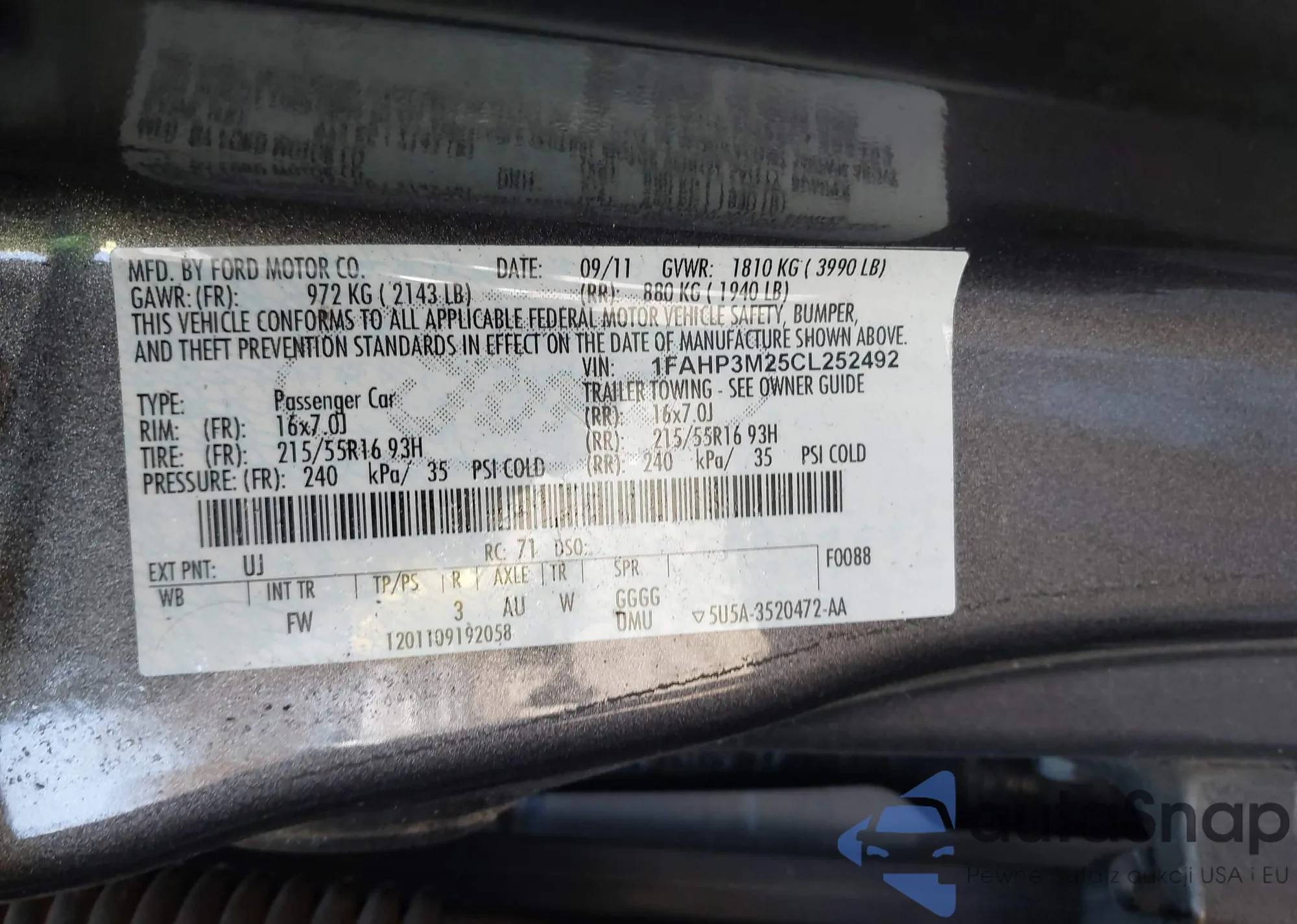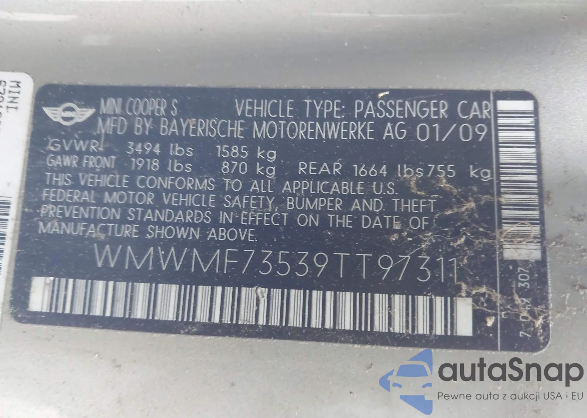LOT: 44242628 VIN: WMWMF73539TT97311