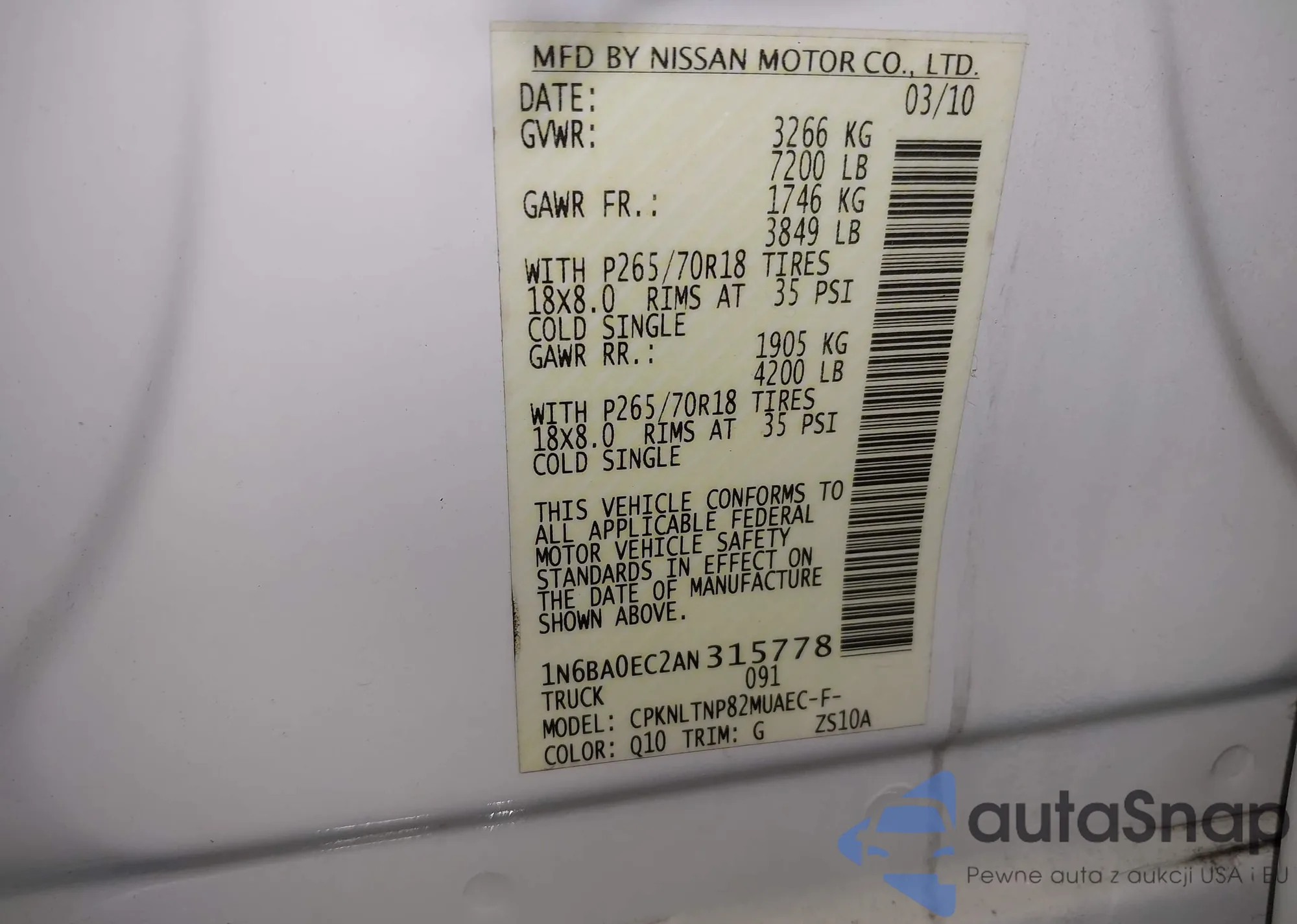 • VIN 1N6BA0EC2AN315778