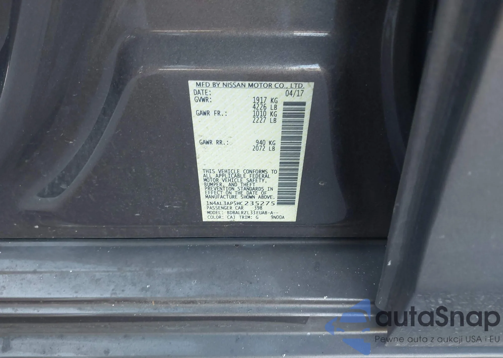 LOT: 44166563 VIN: 1N4AL3AP5HC235275