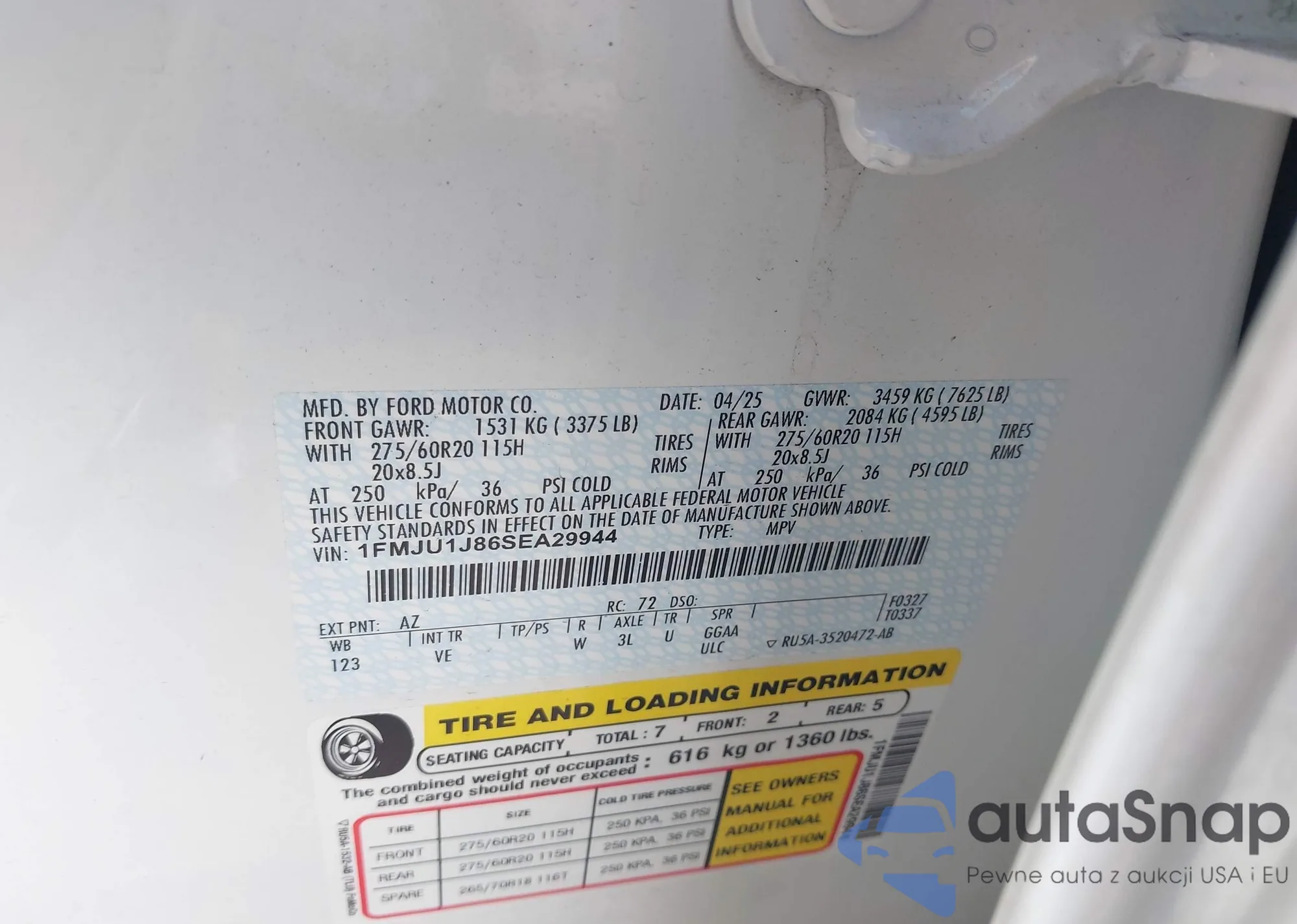 LOT: 44194750 VIN: 1FMJU1J86SEA29944