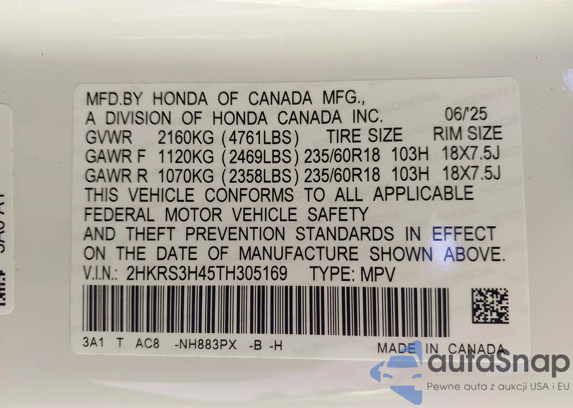 LOT: 43664487 VIN: JN1EV7BR6MM756123