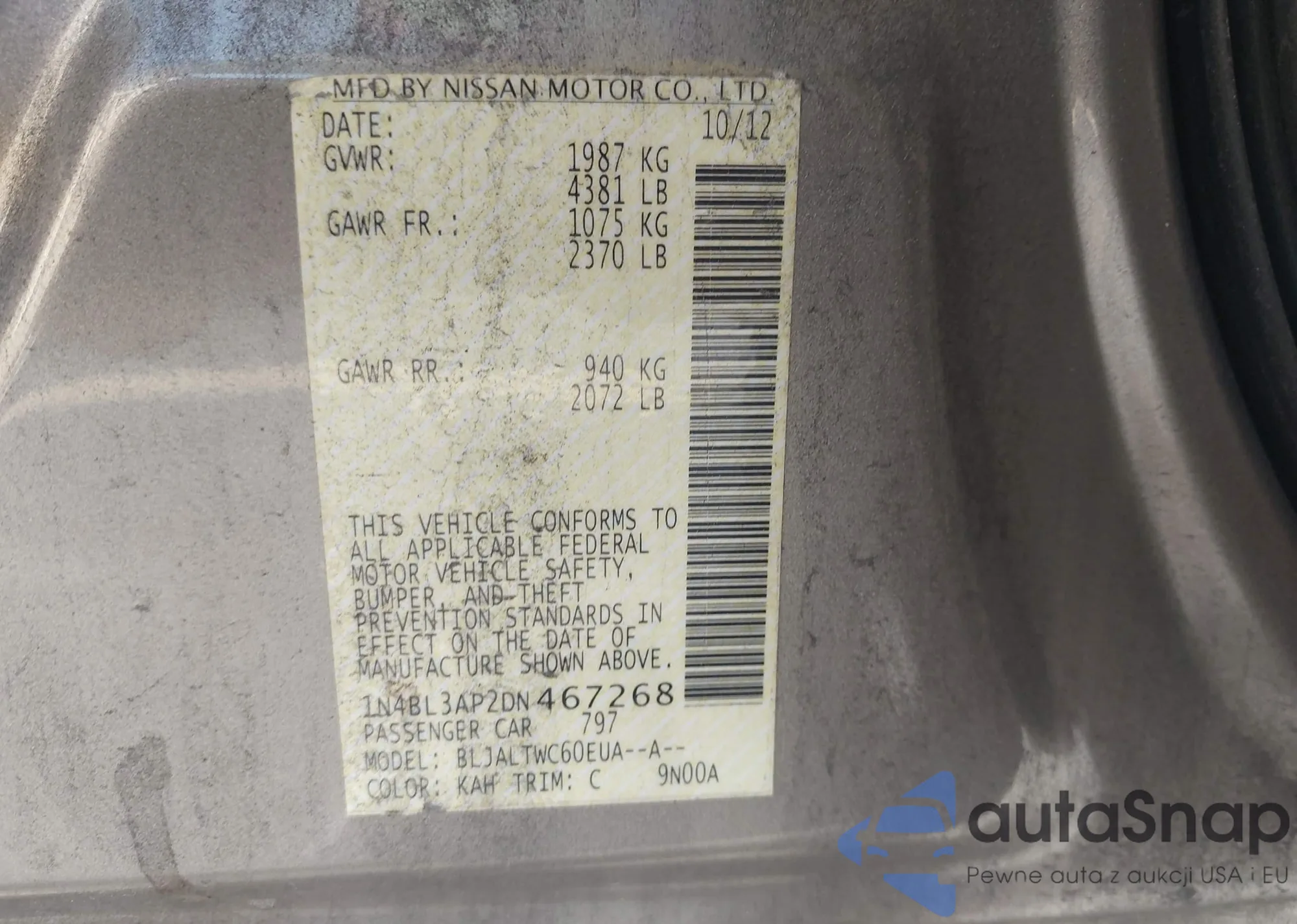 • VIN 1N4BL3AP2DN467268