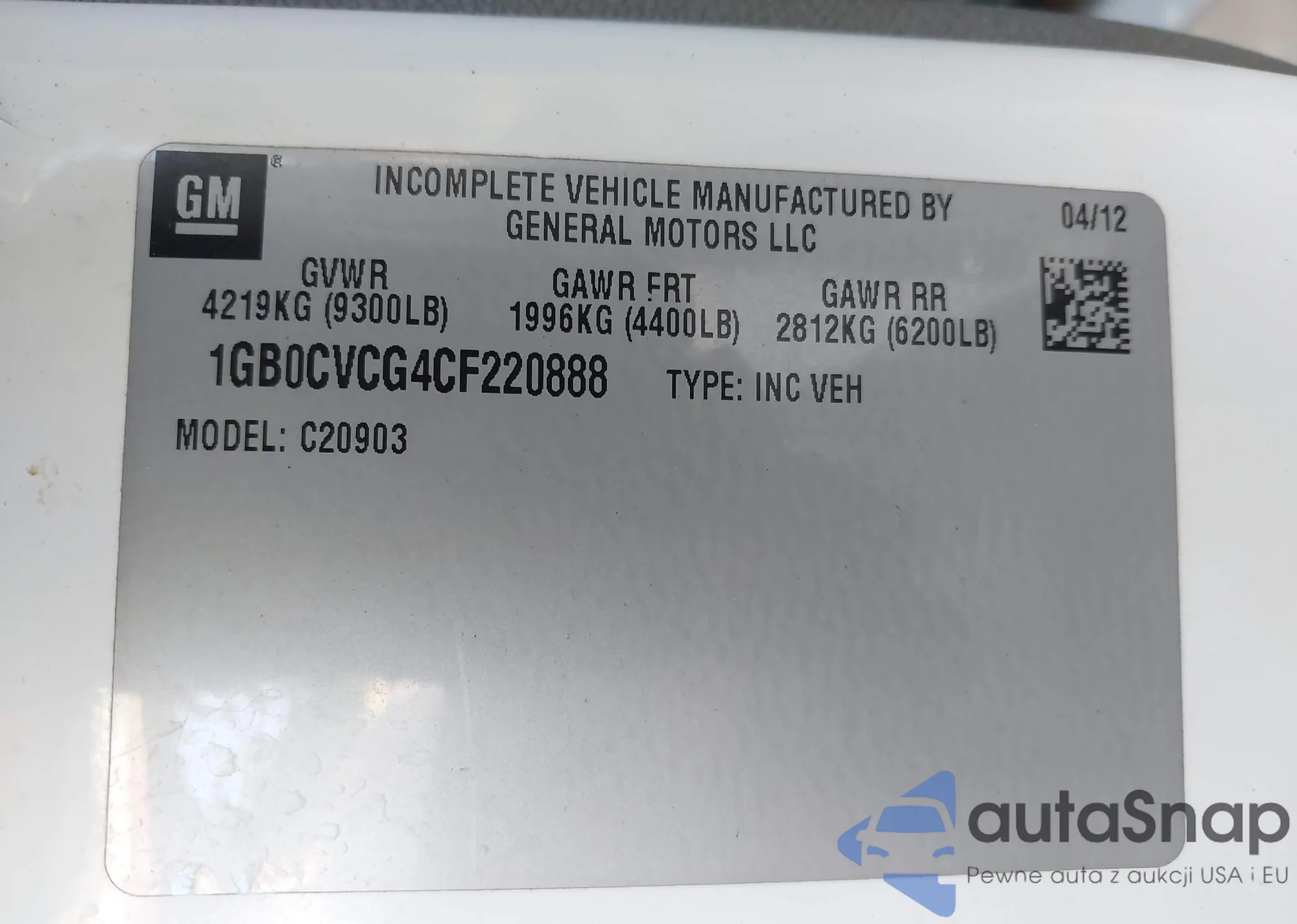 LOT: 44111732 VIN: 1GB0CVCG4CF220888
