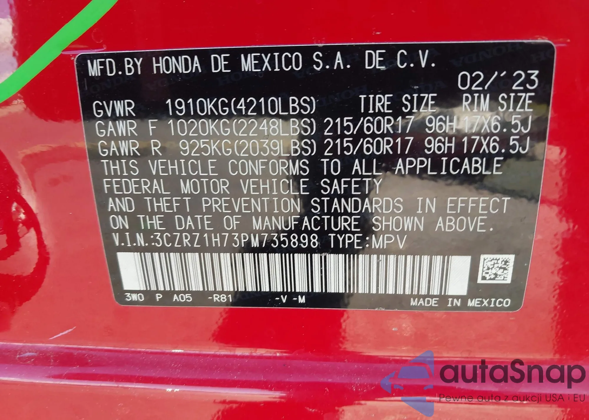 • VIN 3VV3B7AX3MM100450