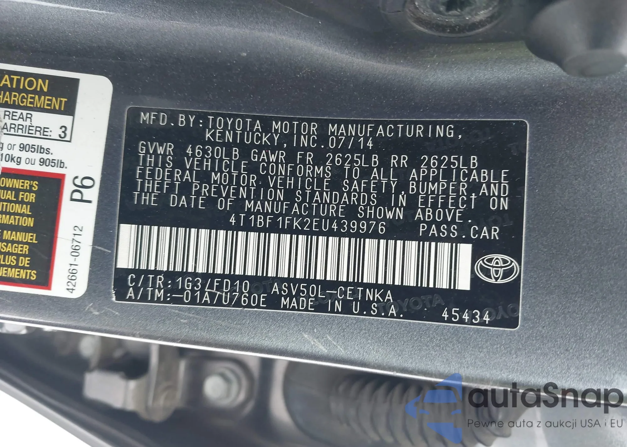 • VIN 4T1BF1FK2EU439976