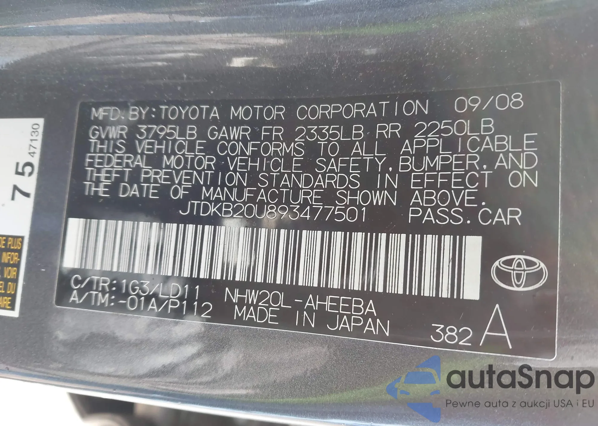 LOT: 44193832 VIN: JTDKB20U893477501