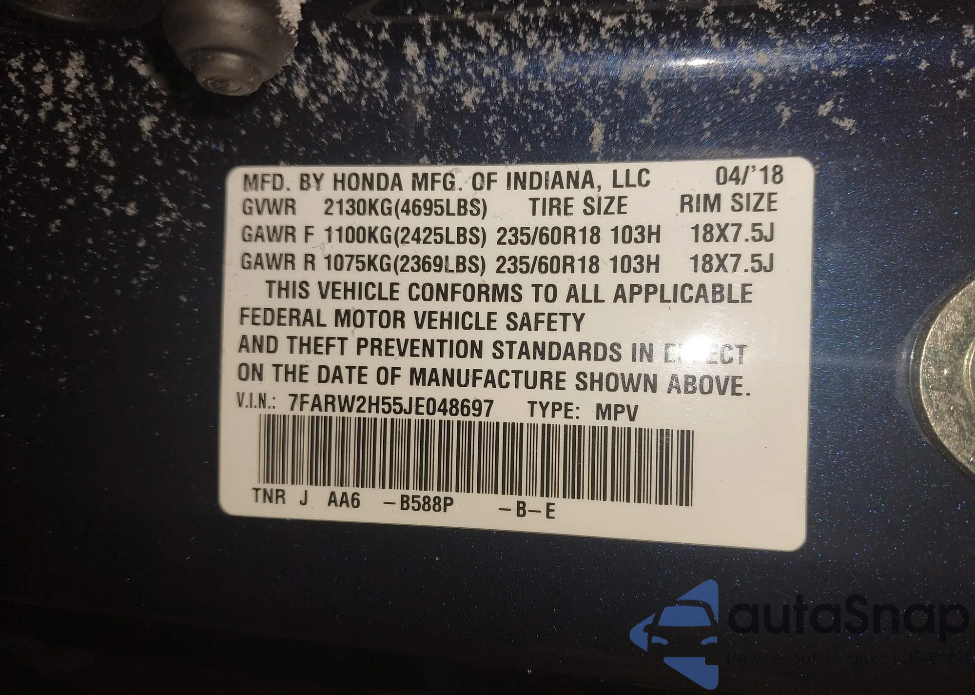 • VIN 7FARW2H55JE048697
