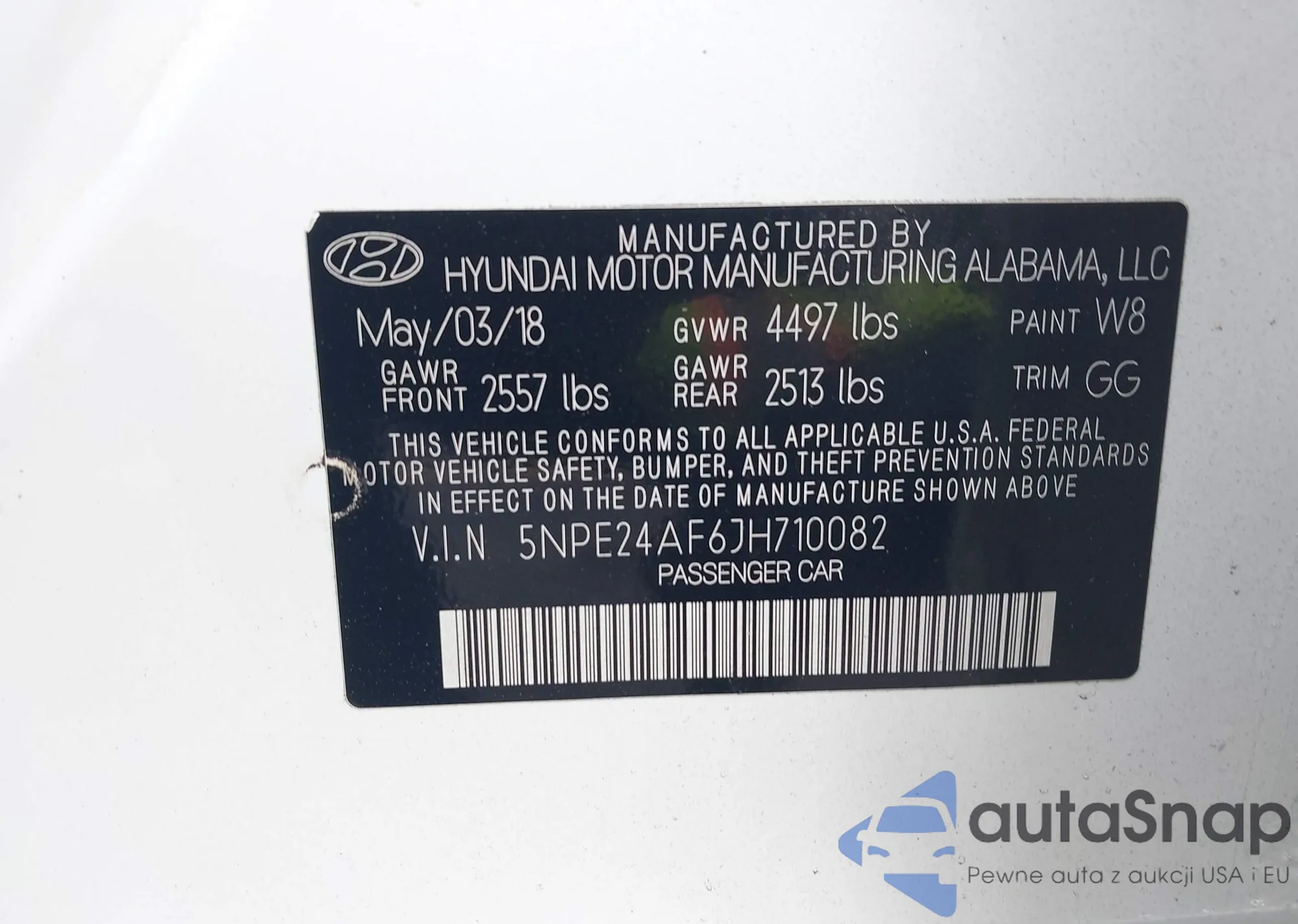 • VIN 5NPE24AF6JH710082