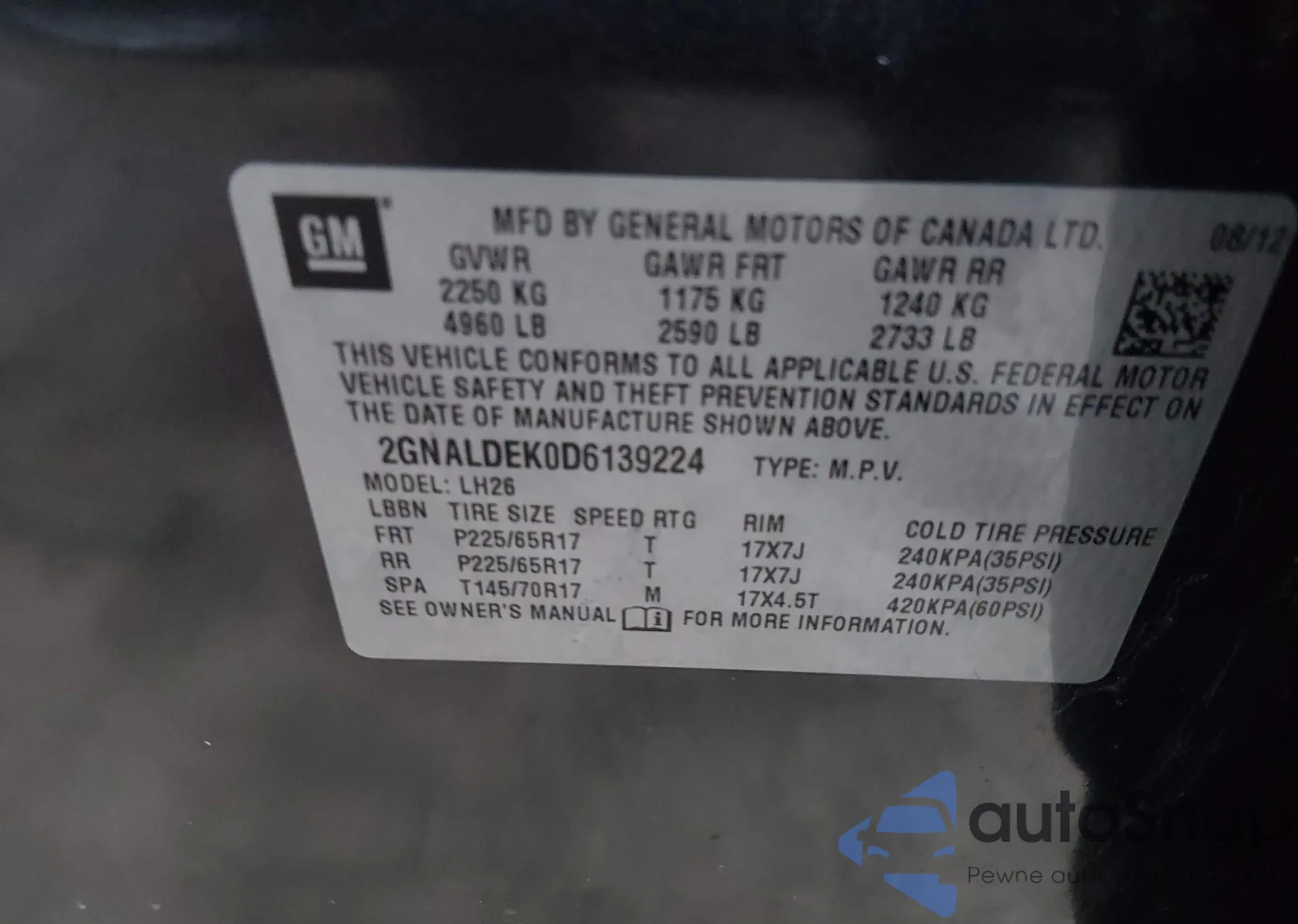 • VIN 2GNALDEK0D6139224