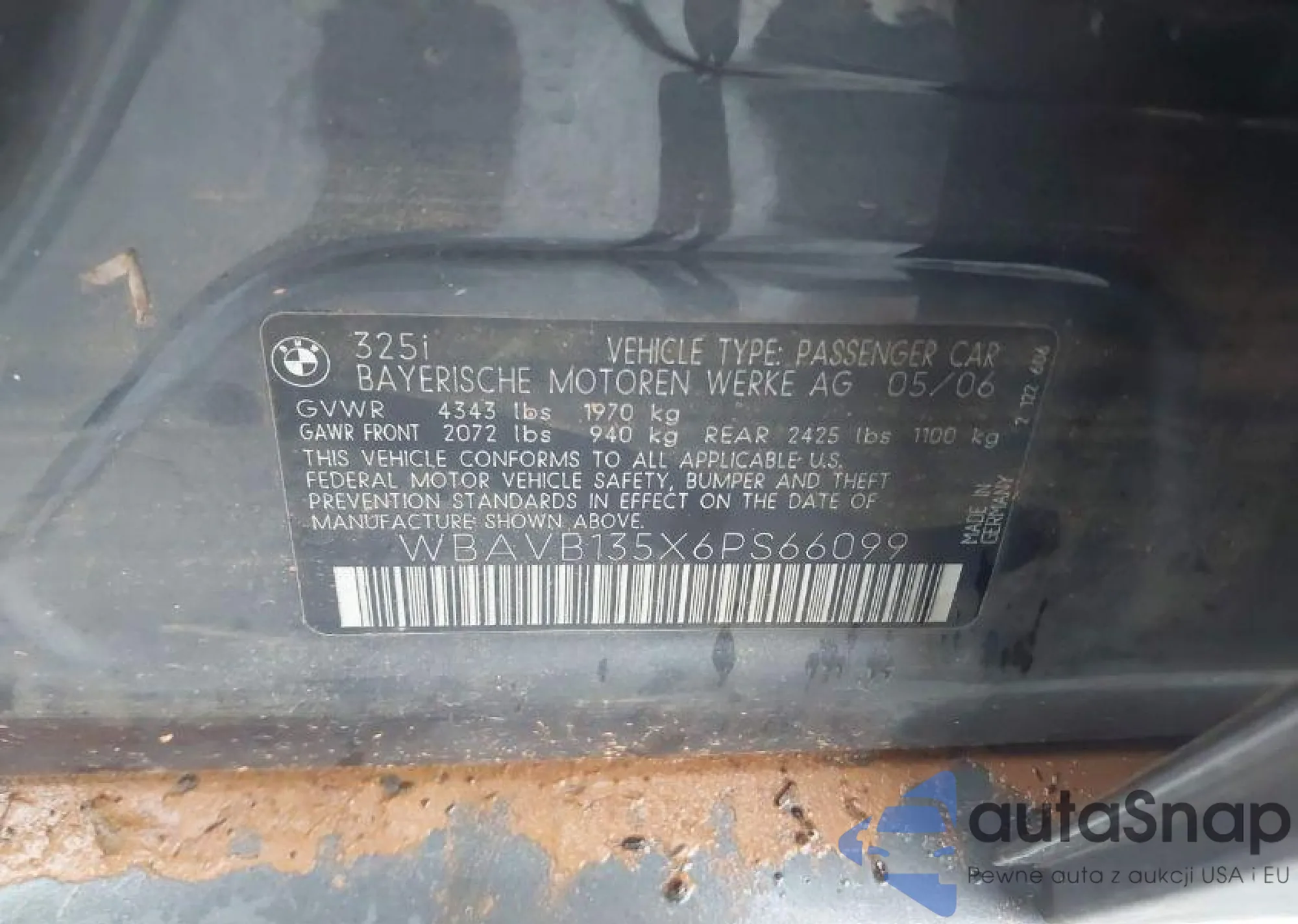 • VIN WBAVB135X6PS66099