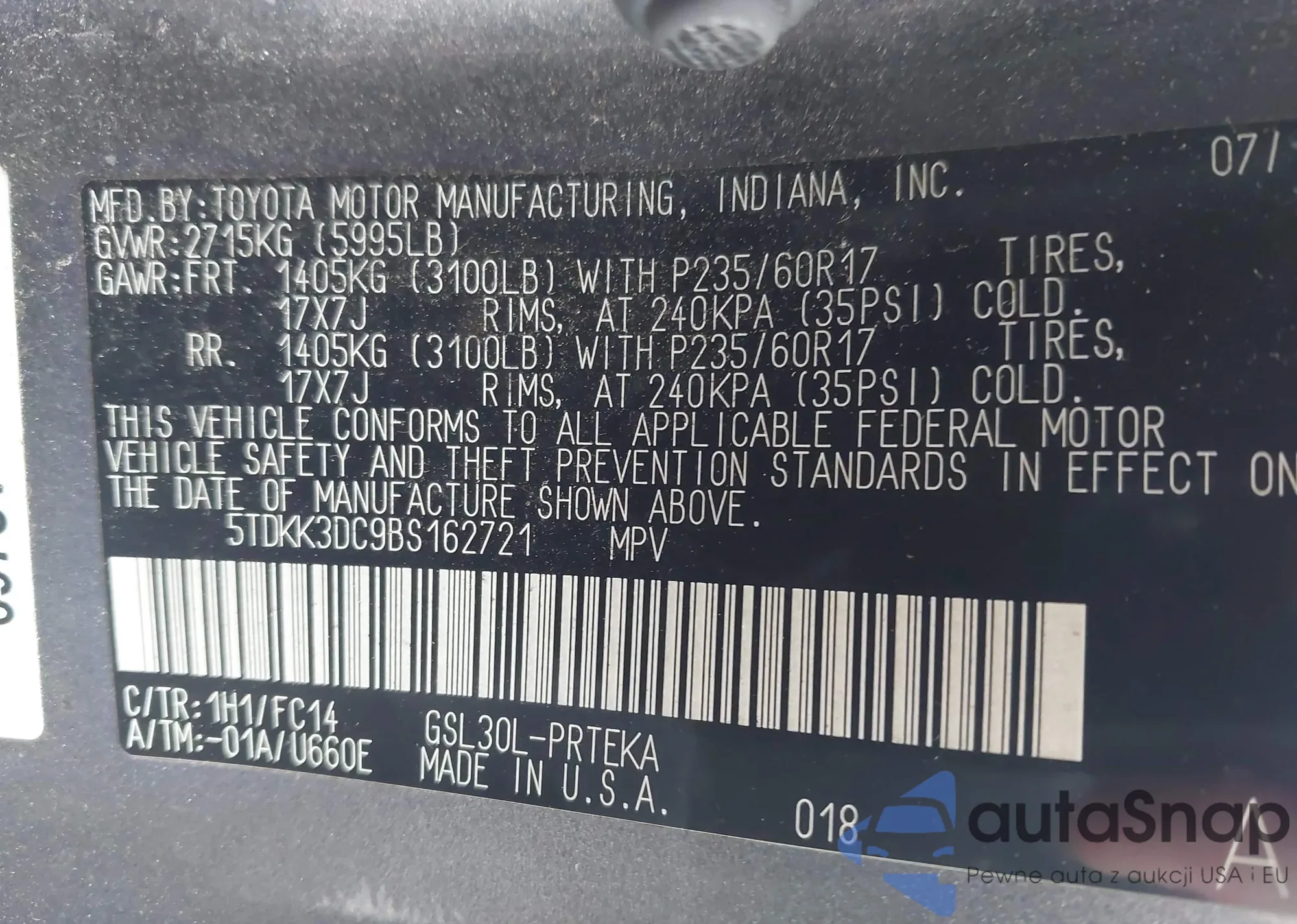 • VIN 5TDKK3DC9BS162721
