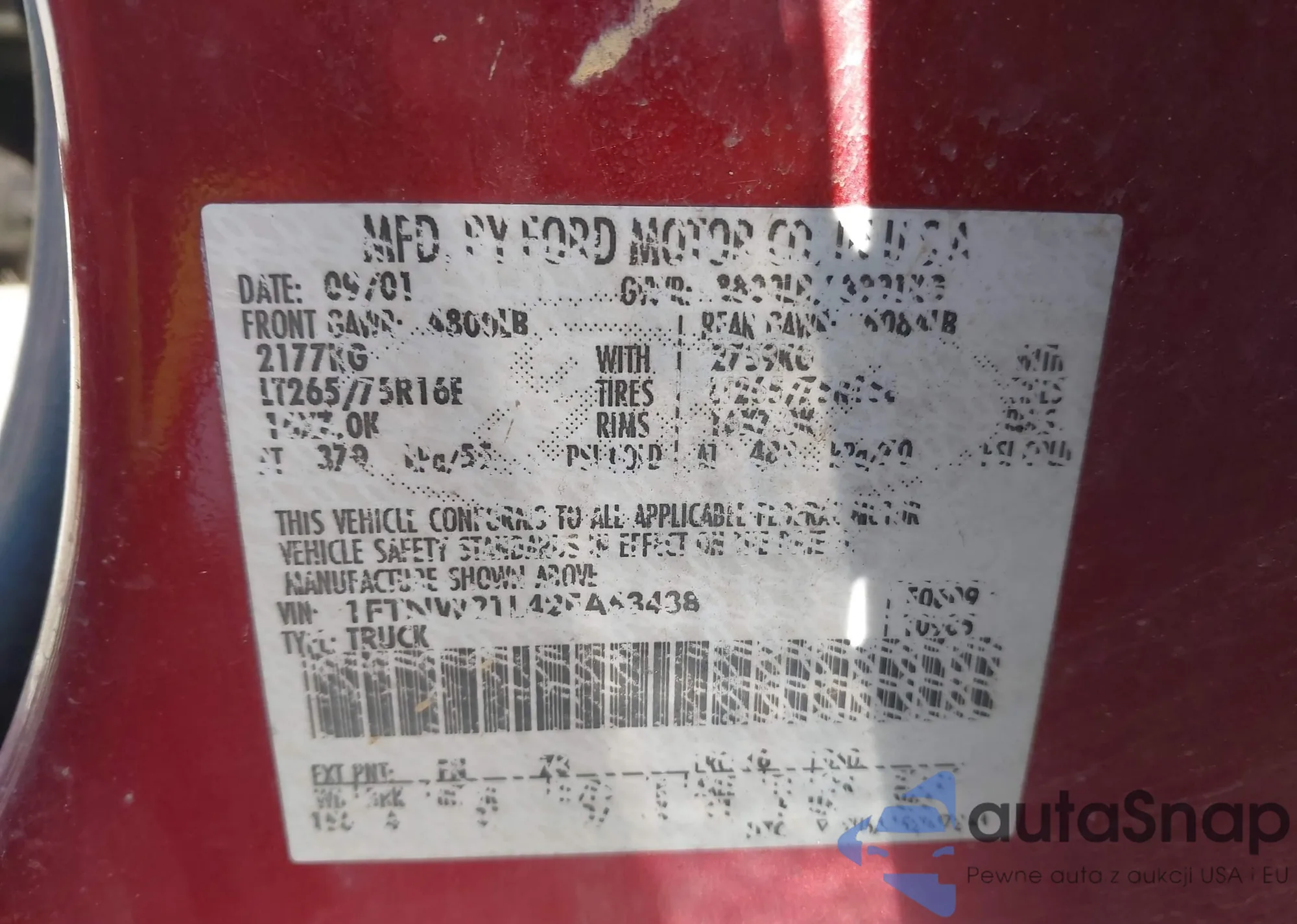• VIN 1FTNW21L42EA63438