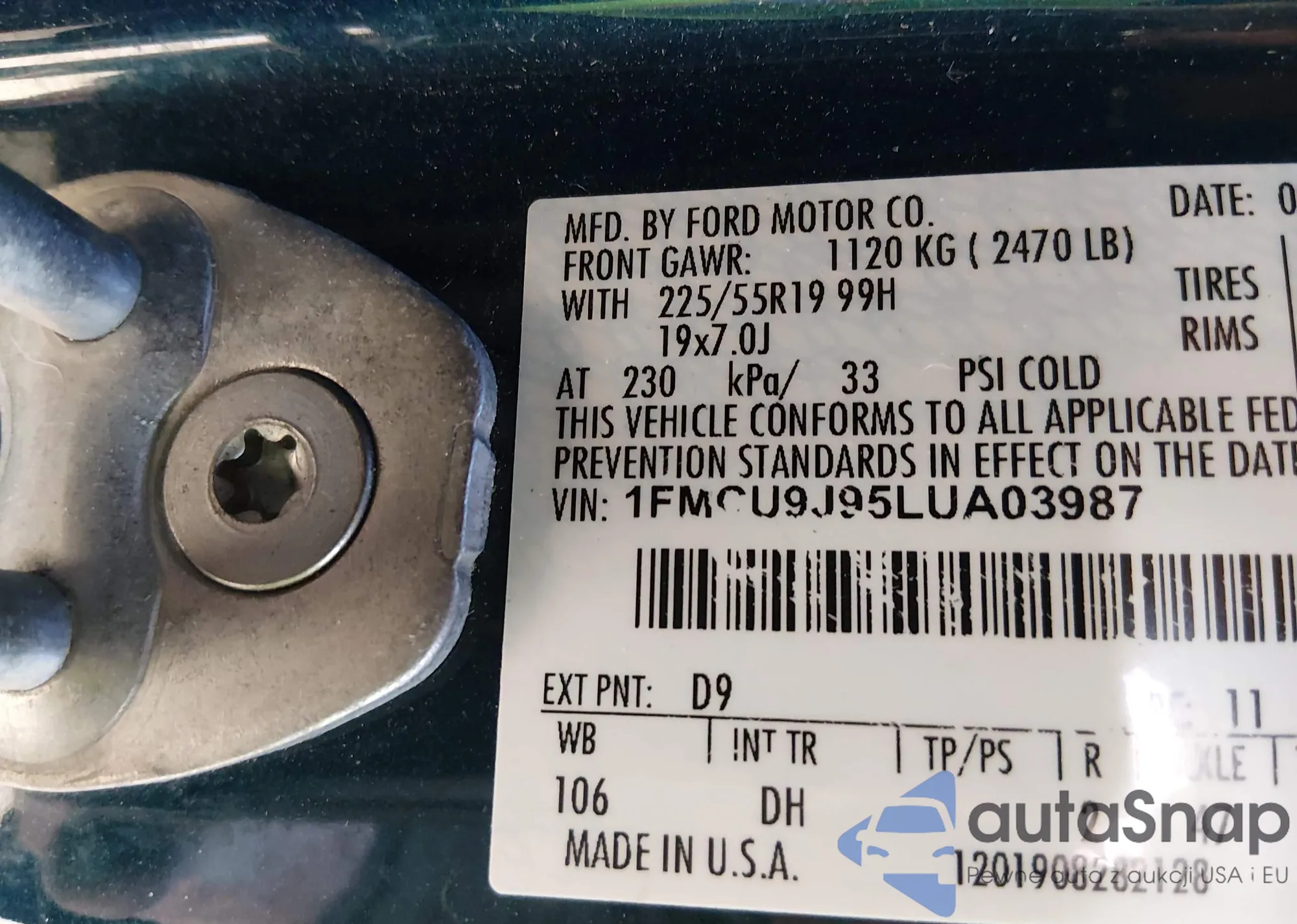 LOT: 43746895 VIN: 1FMCU9J95LUA03987