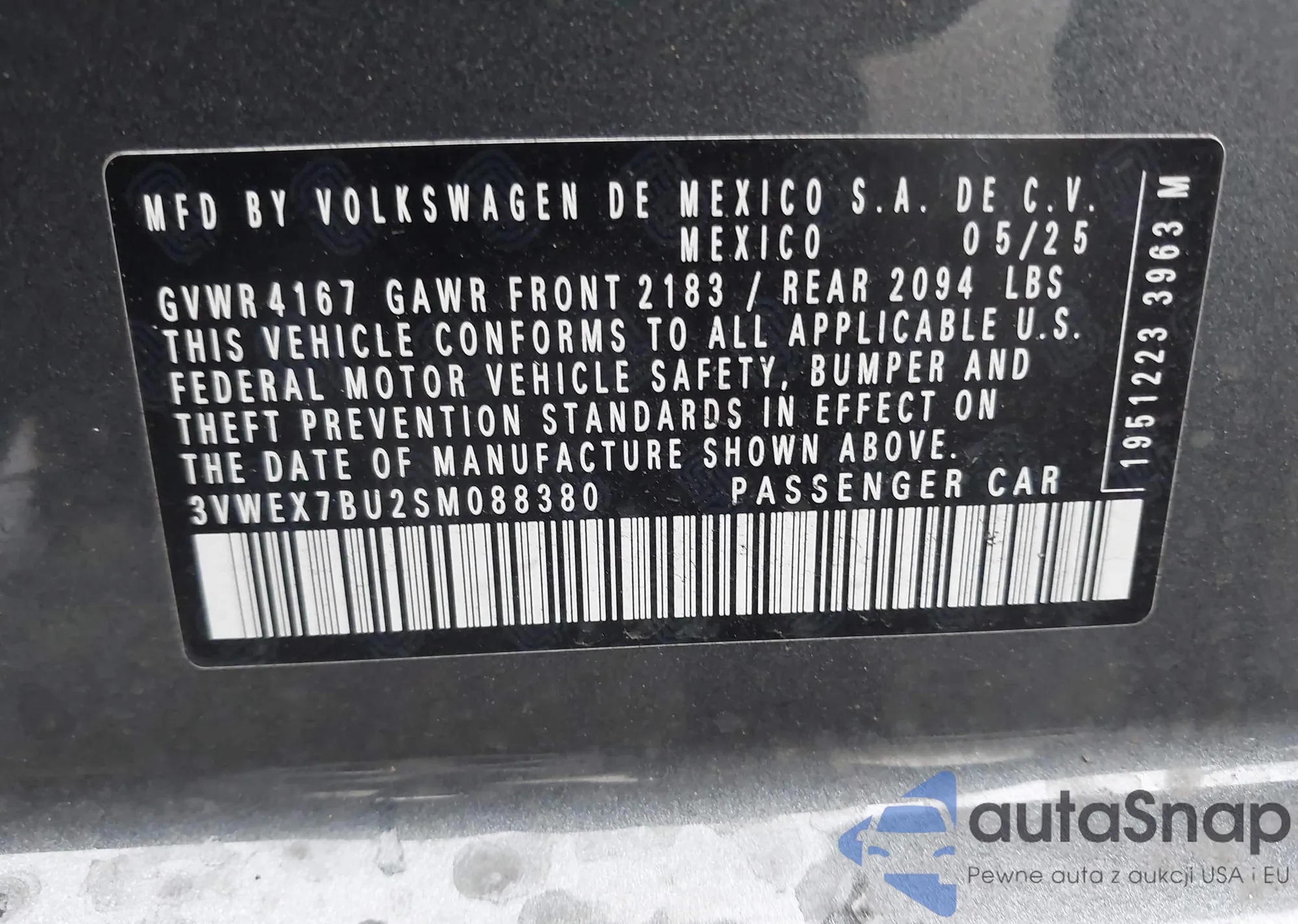 • VIN 3VWEX7BU2SM088380