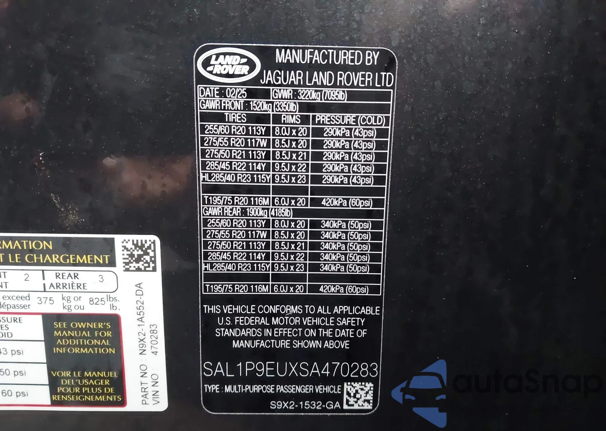 • VIN SAL1P9EUXSA470283
