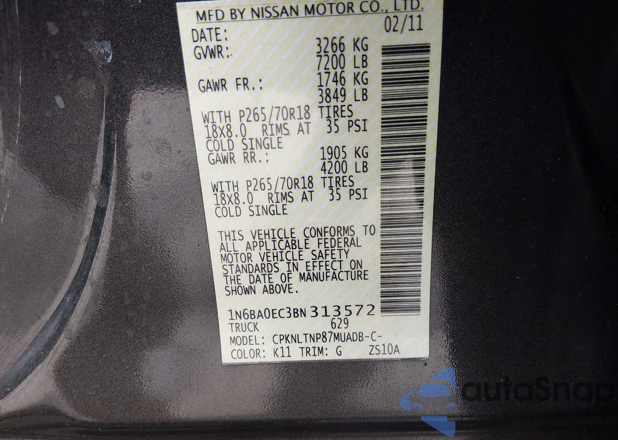 • VIN 1N4AL3AP6EC269897
