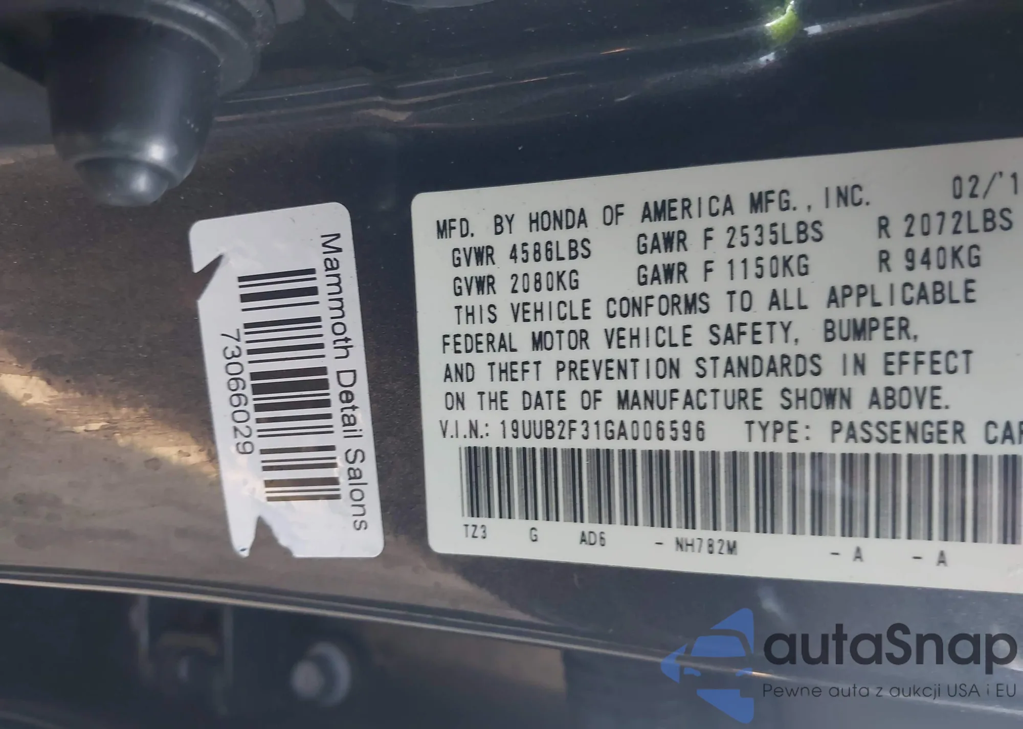 • VIN 19UUB2F31GA006596