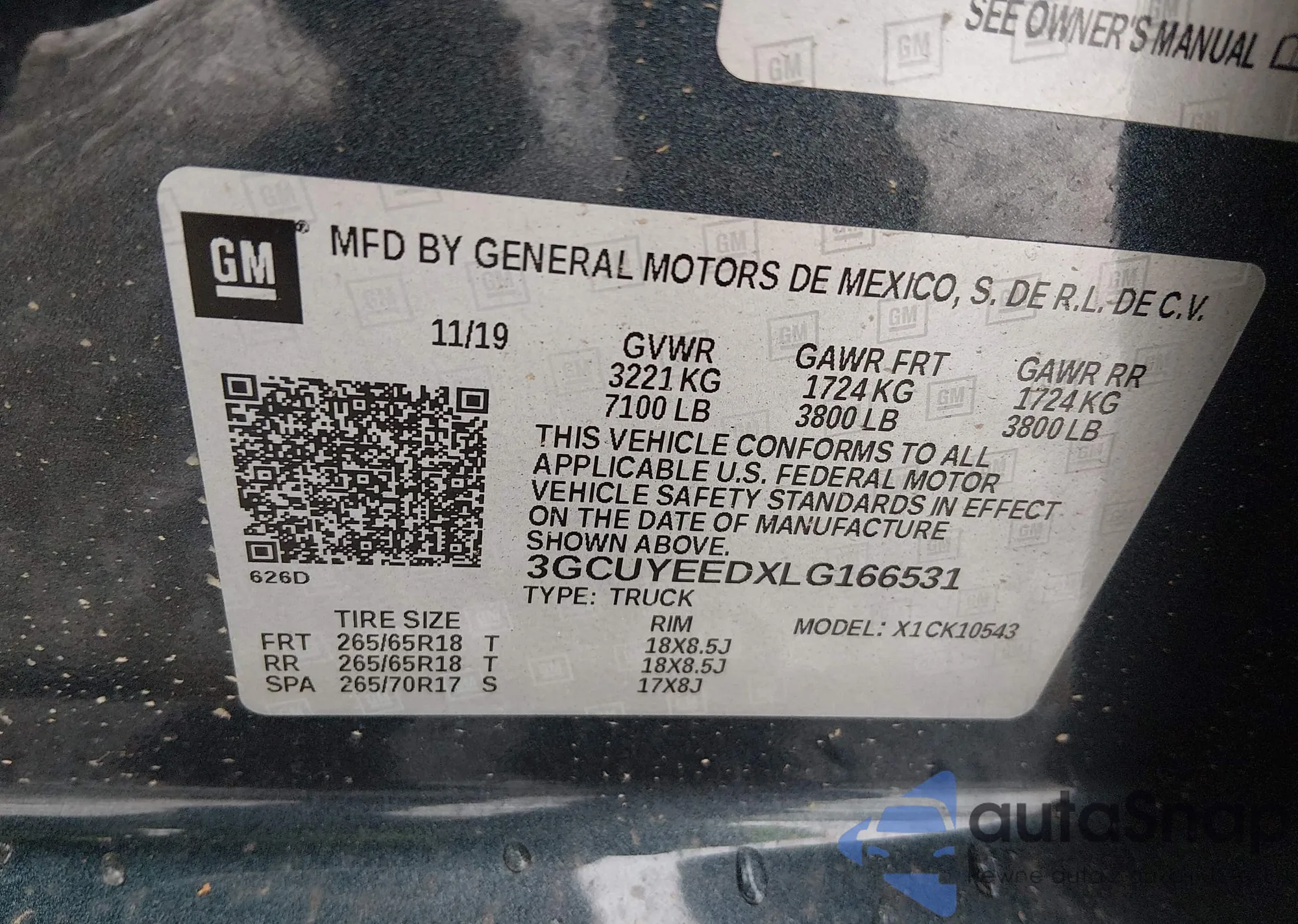 • VIN 3GCUYEEDXLG166531