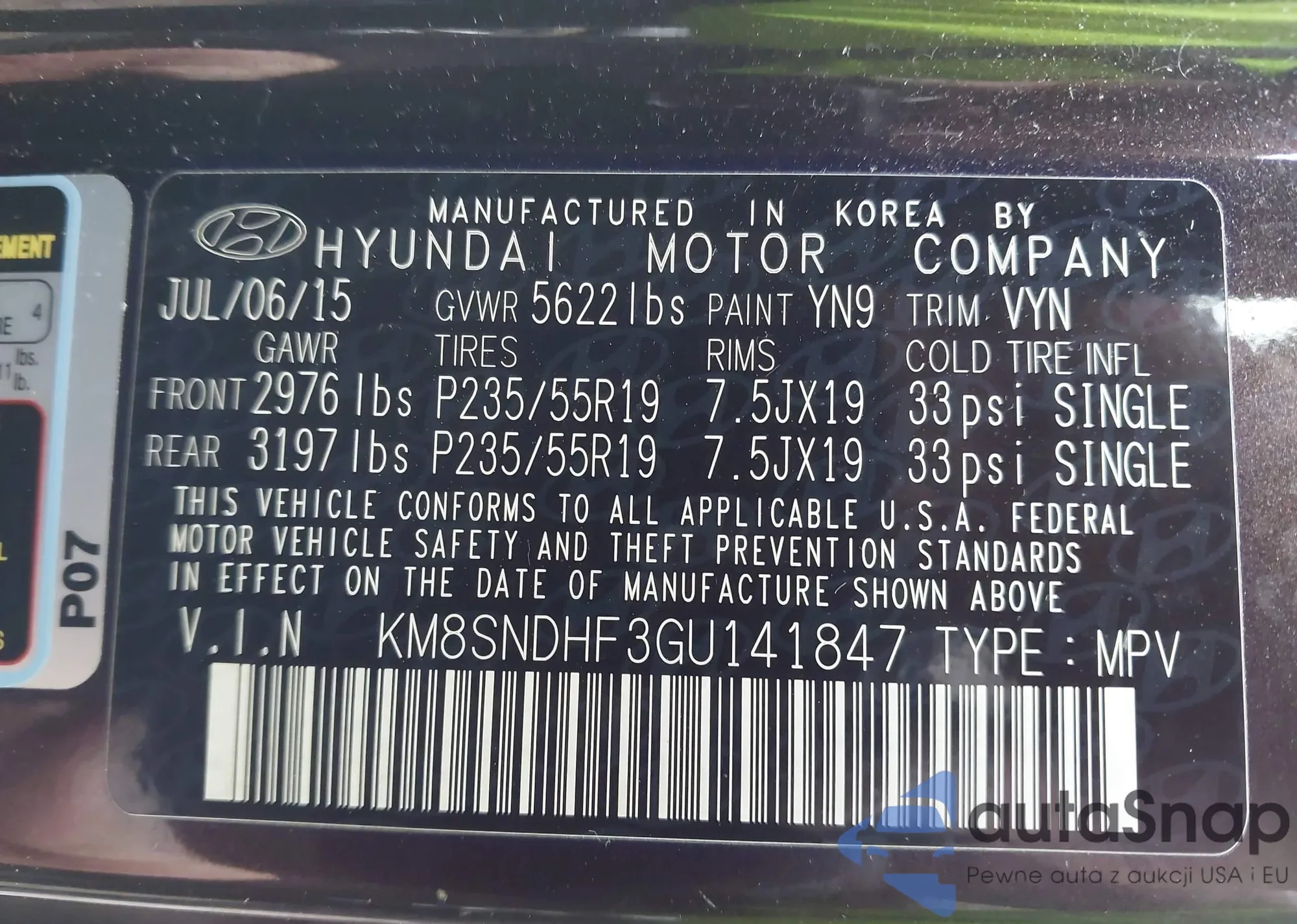 • VIN KM8SNDHF3GU141847
