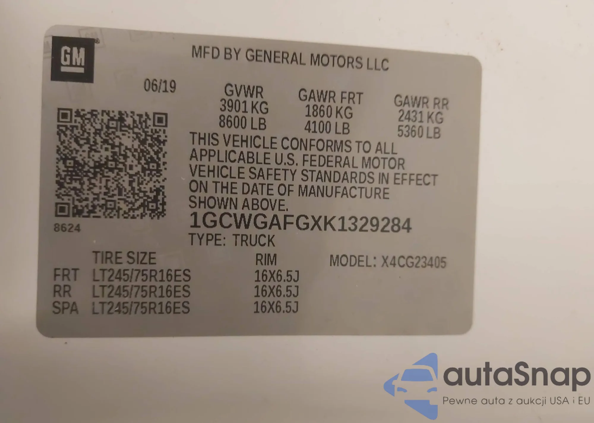 LOT: 44289200 VIN: 1GCWGAFGXK1329284