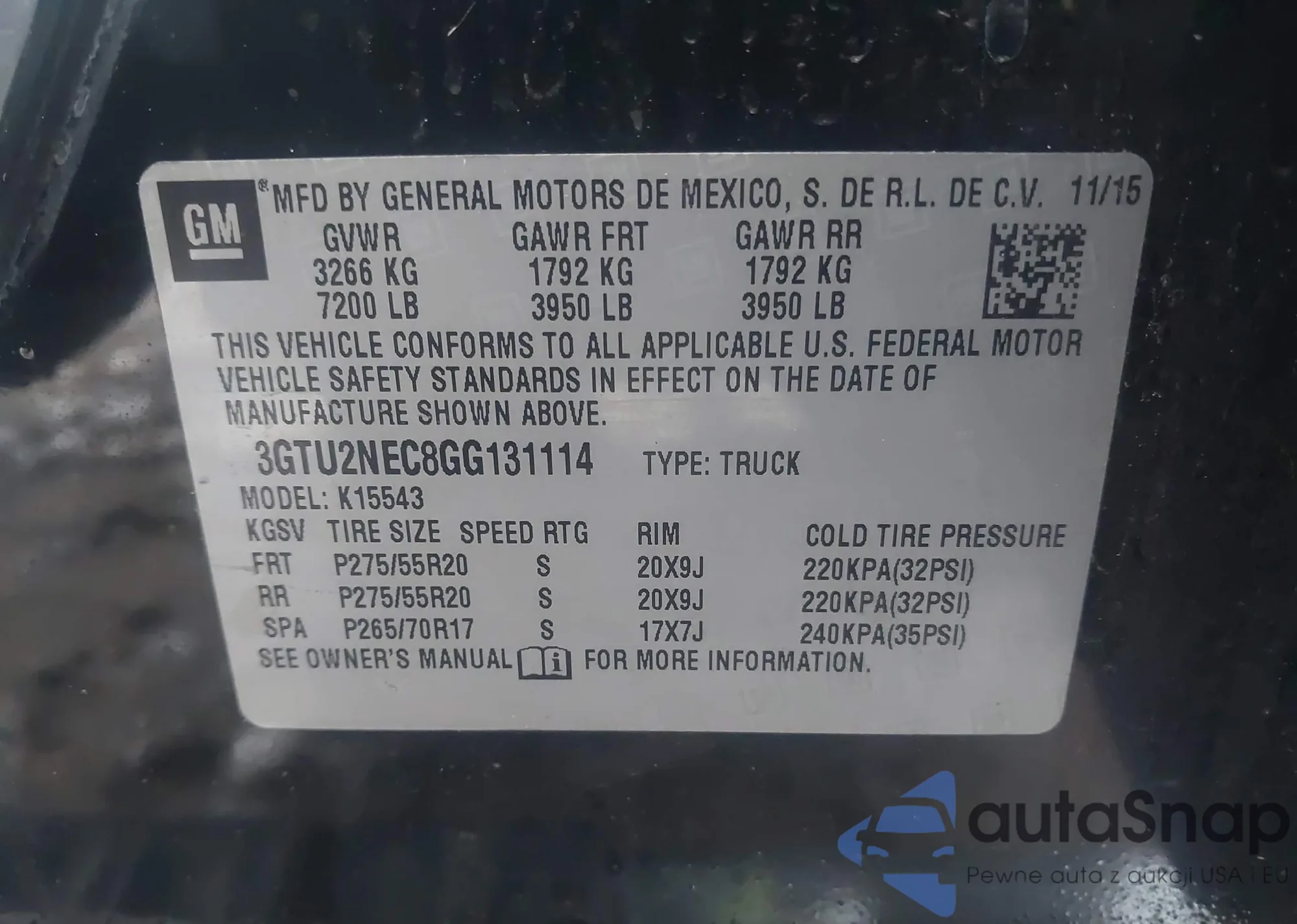 • VIN 3GTU2NEC8GG131114
