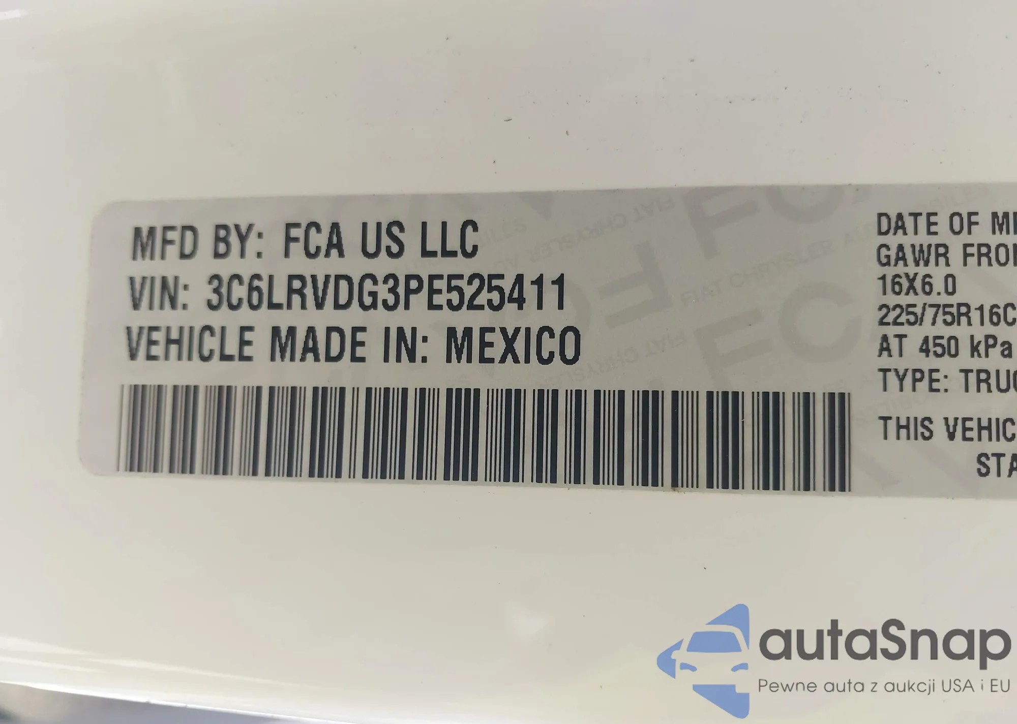 LOT: 43447181 VIN: 3C6LRVDG3PE525411