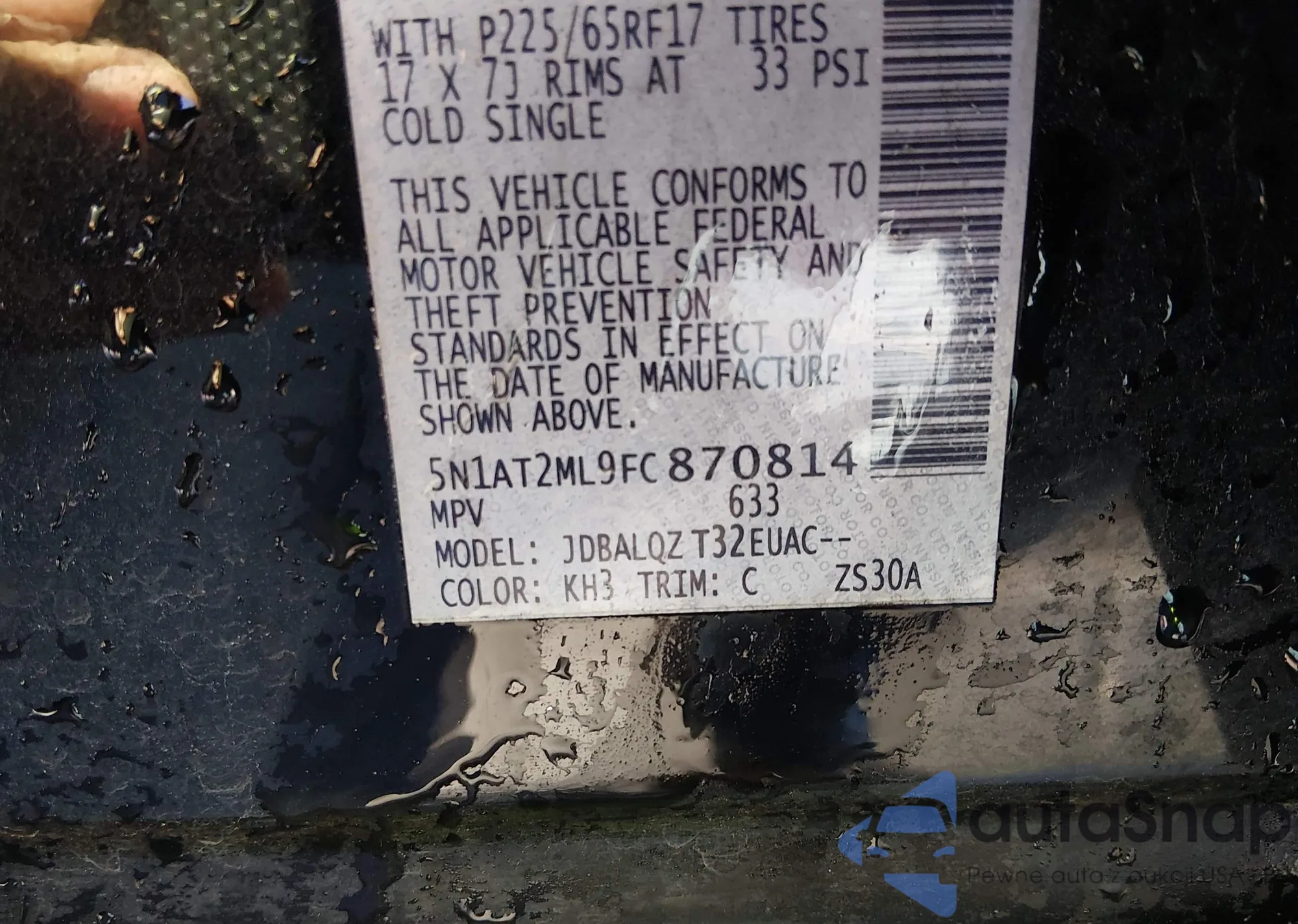 • VIN 5N1AT2ML9FC870814