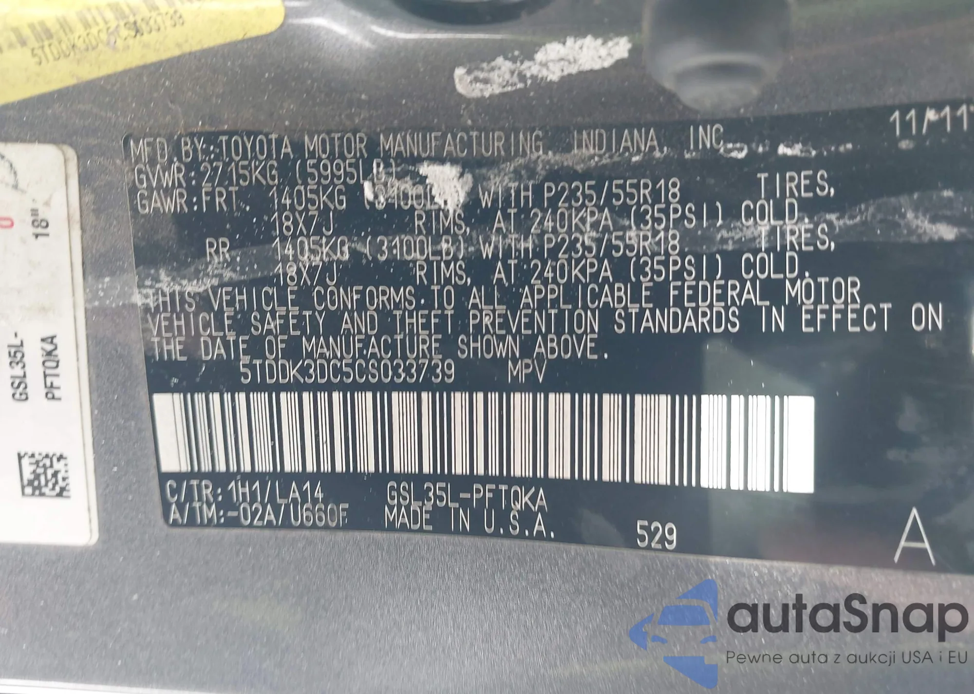 • VIN 4T1BF1FK9CU602751