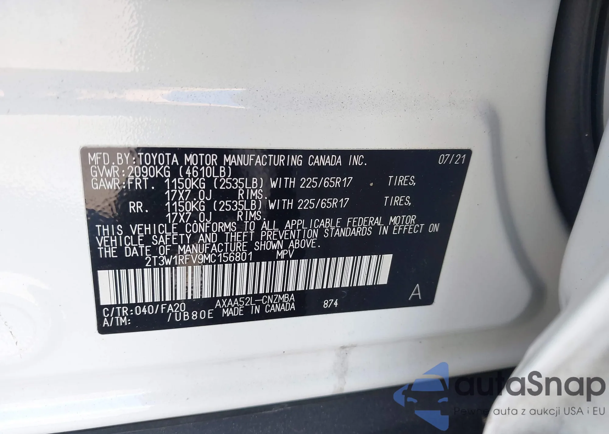• VIN JTEAAAAHXNJ088760