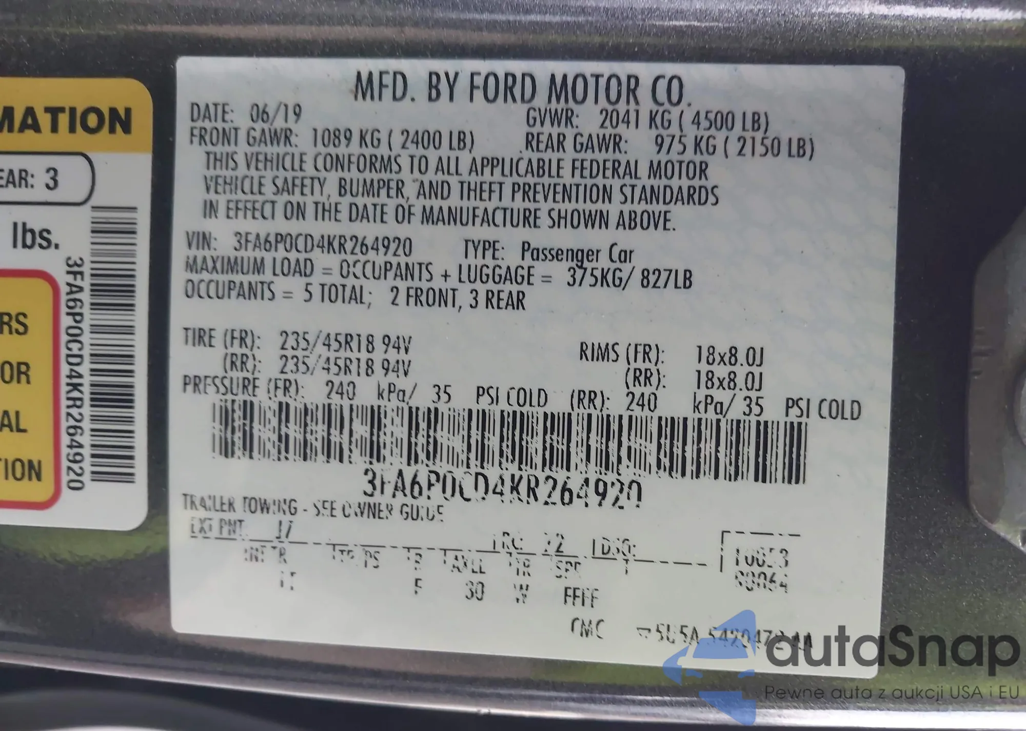 • VIN 3FA6P0CD4KR264920