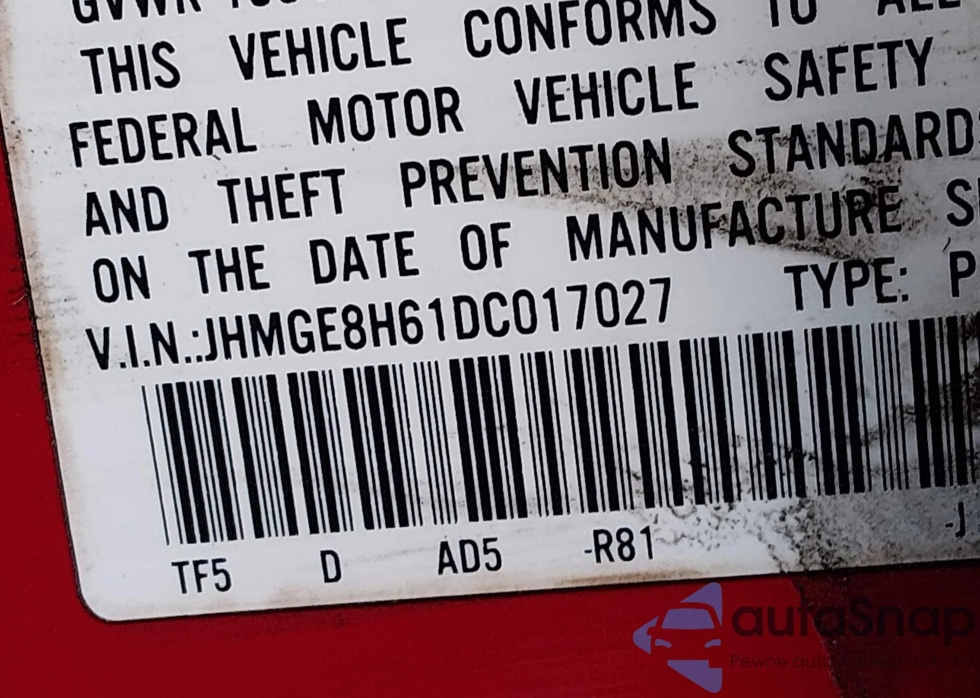 • VIN 5J6RE4H58AL081789