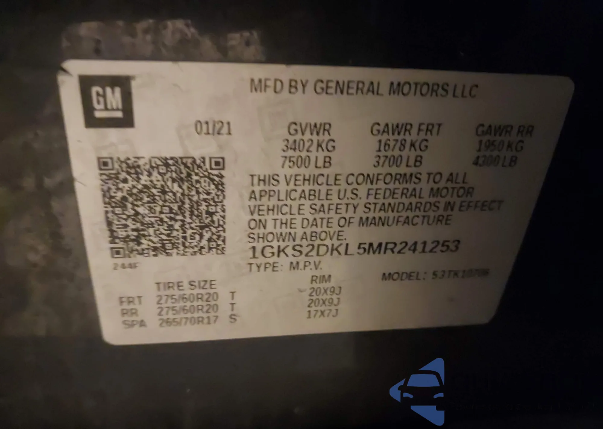 LOT: 44153005 VIN: 1GKS2DKL5MR241253