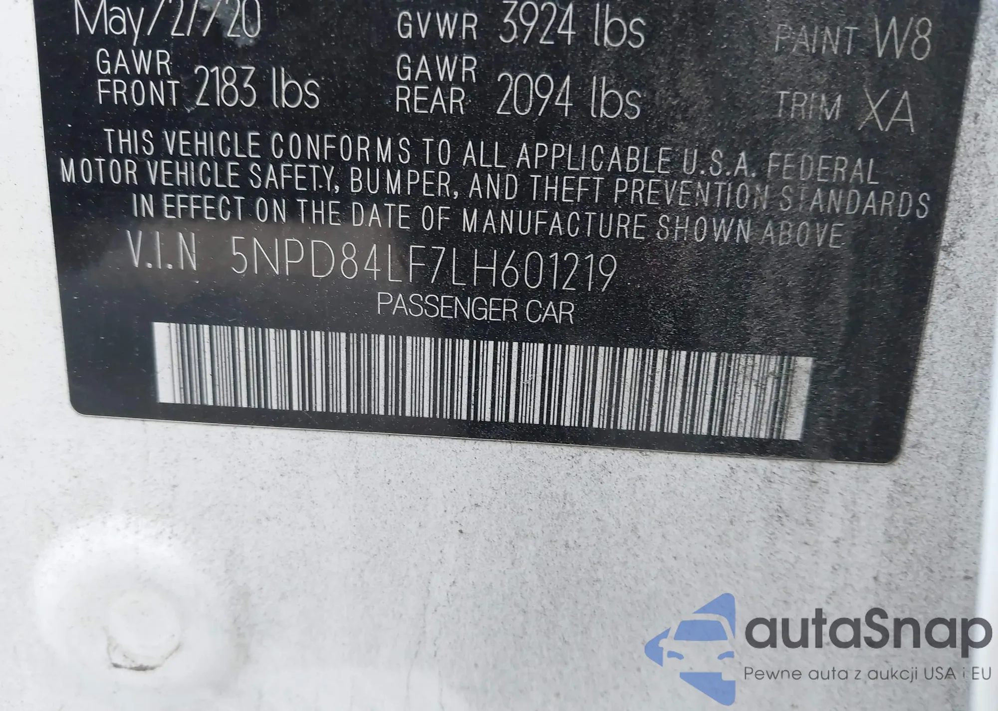 • VIN 5NPD84LF7LH601219