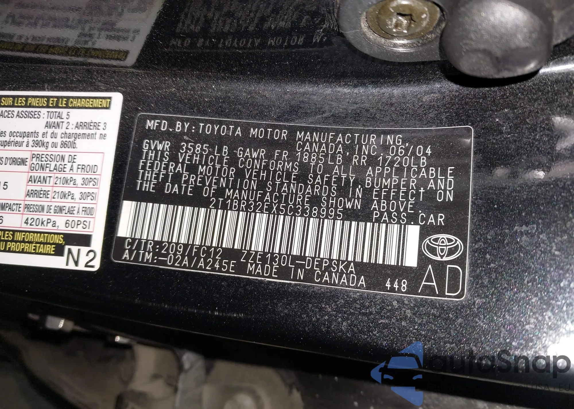 • VIN 4T4BE46K49R075656