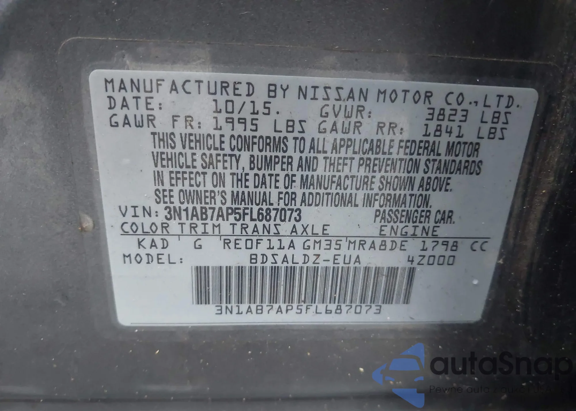• VIN 1N4AA6AP2HC445484