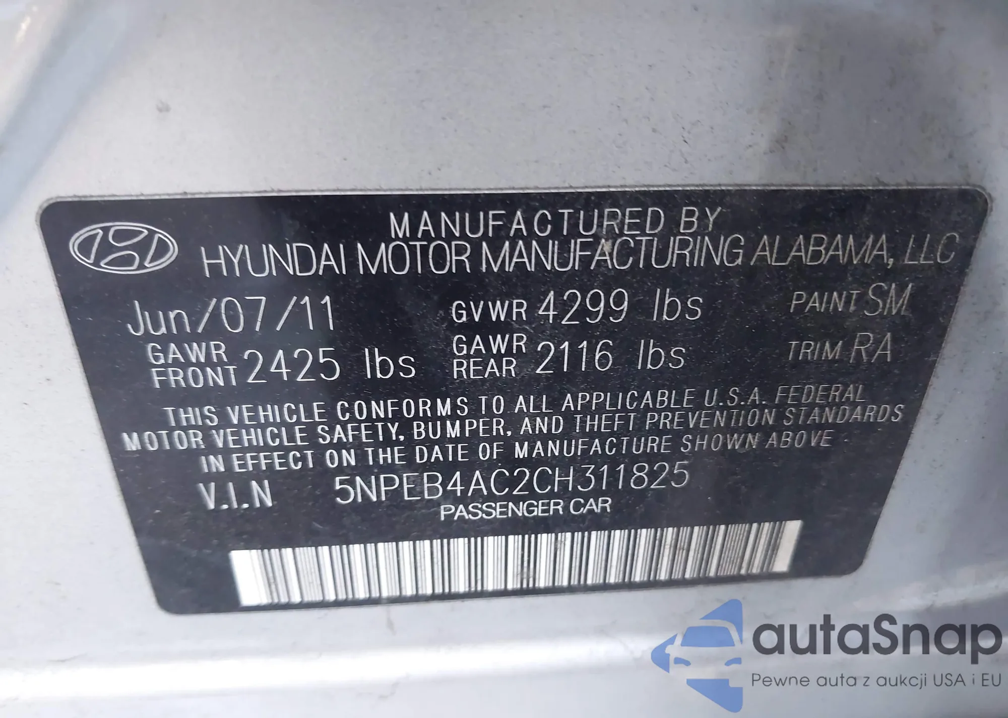 • VIN 5NPEB4AC2CH311825