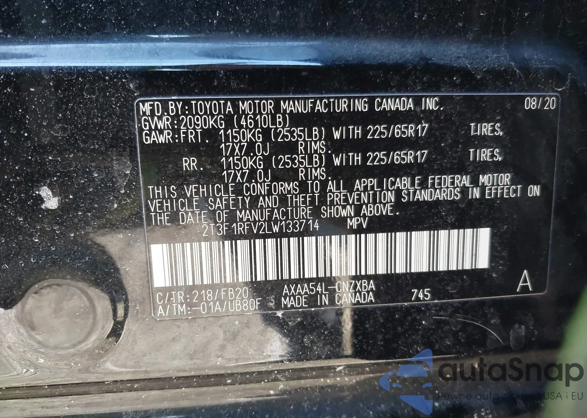 • VIN 2T3F1RFV2LW133714