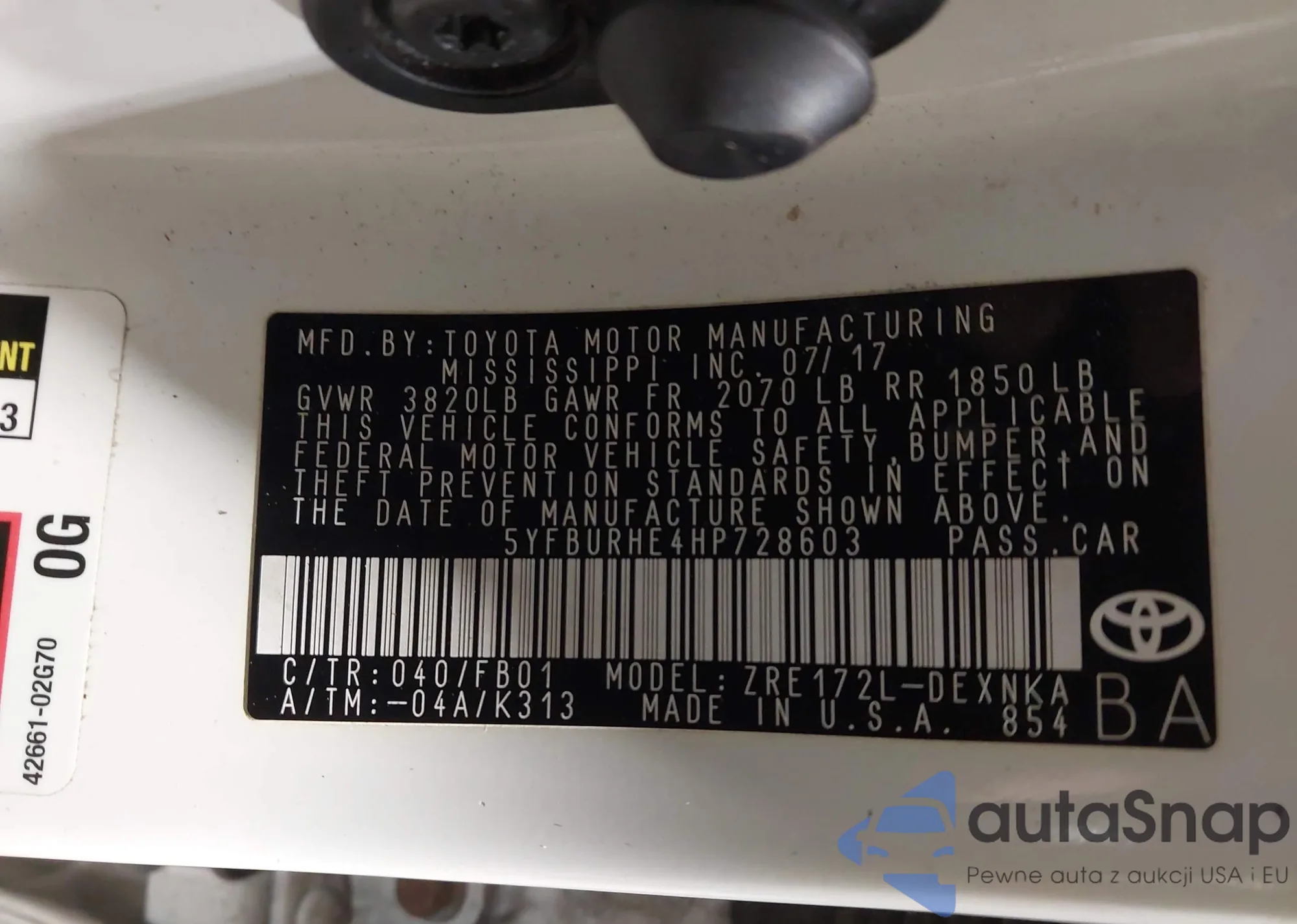 • VIN 5YFBURHE4HP728603