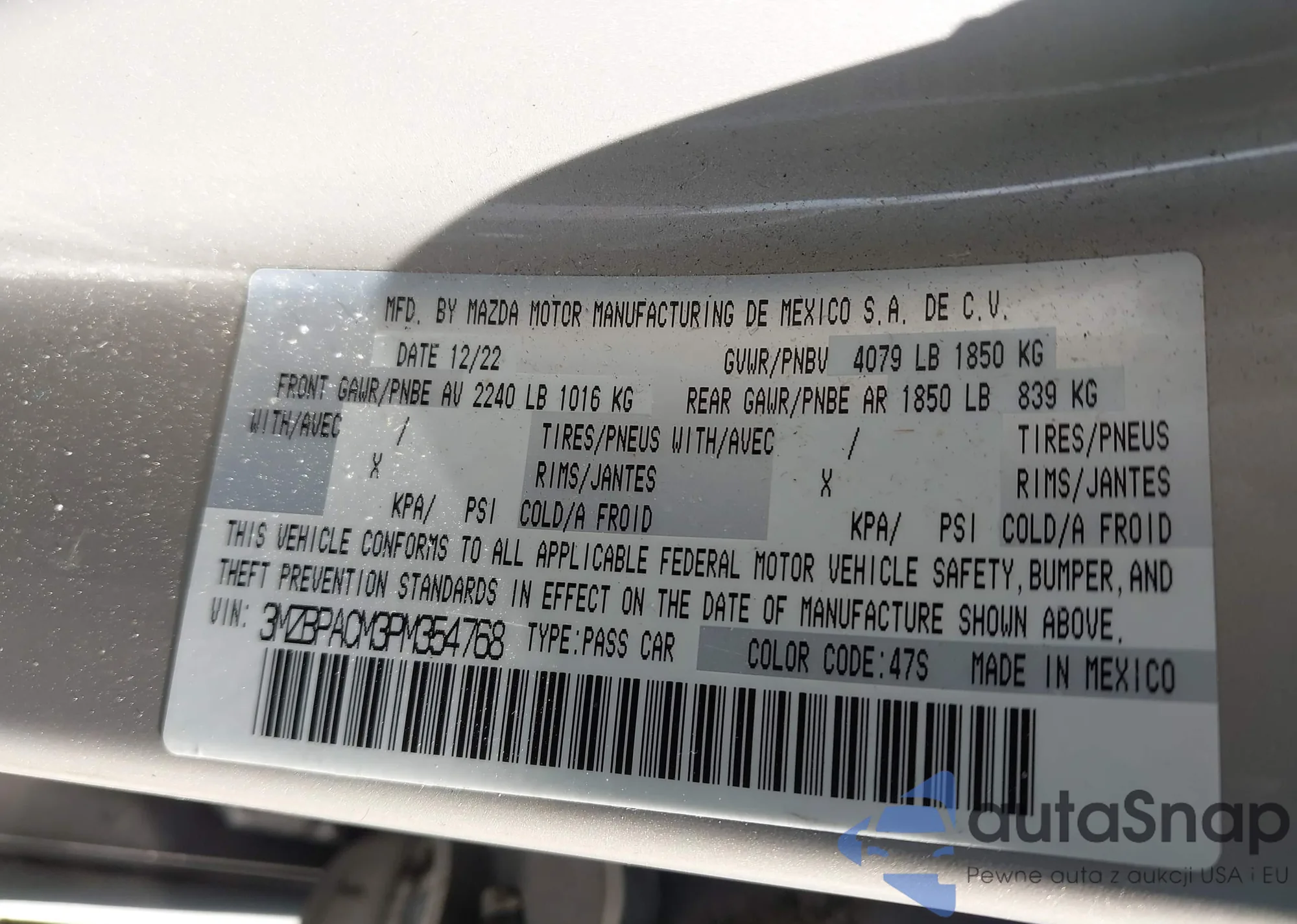 LOT: 44061576 VIN: 3MZBPACM3PM354768