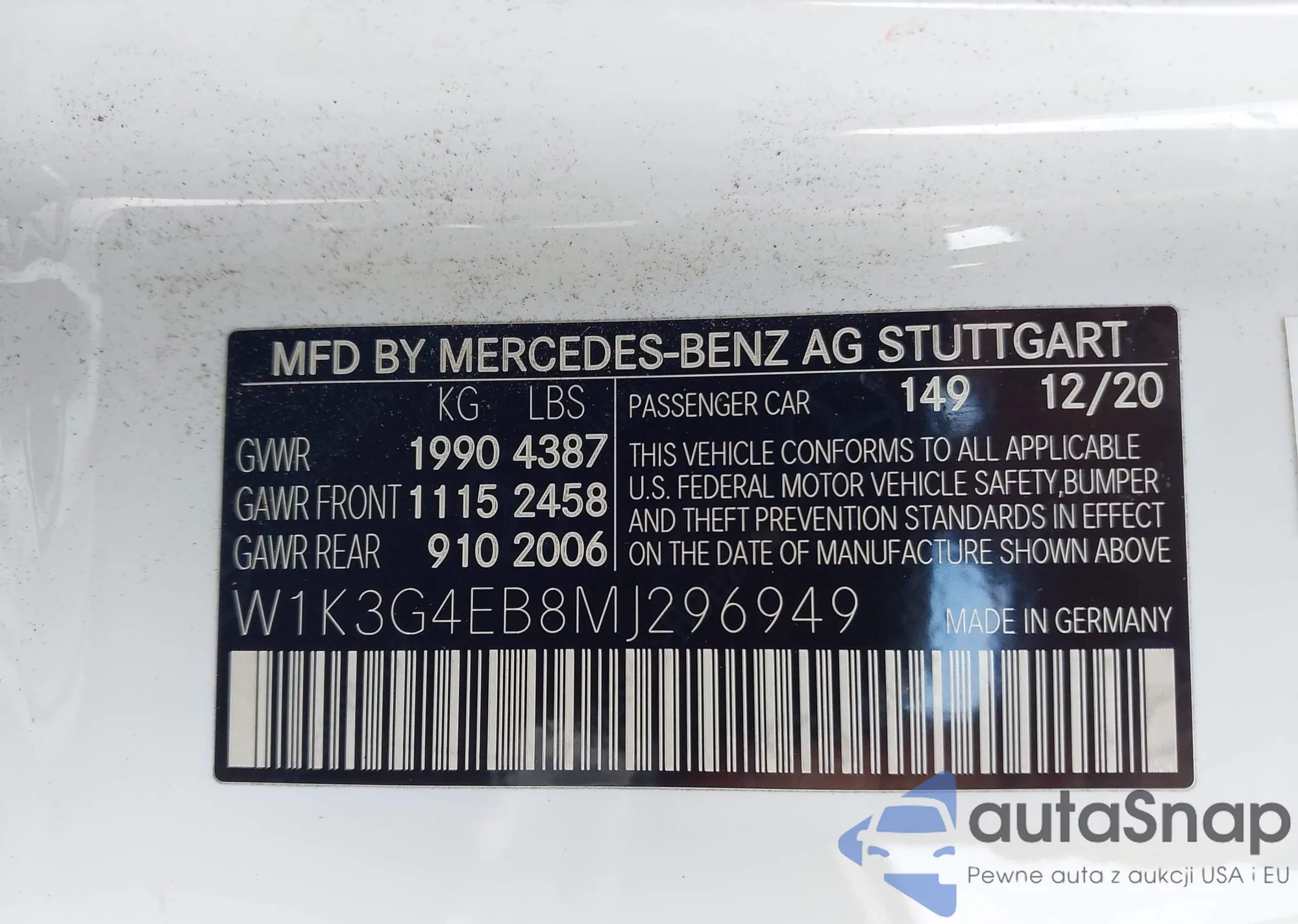 • VIN W1K3G4EB8MJ296949