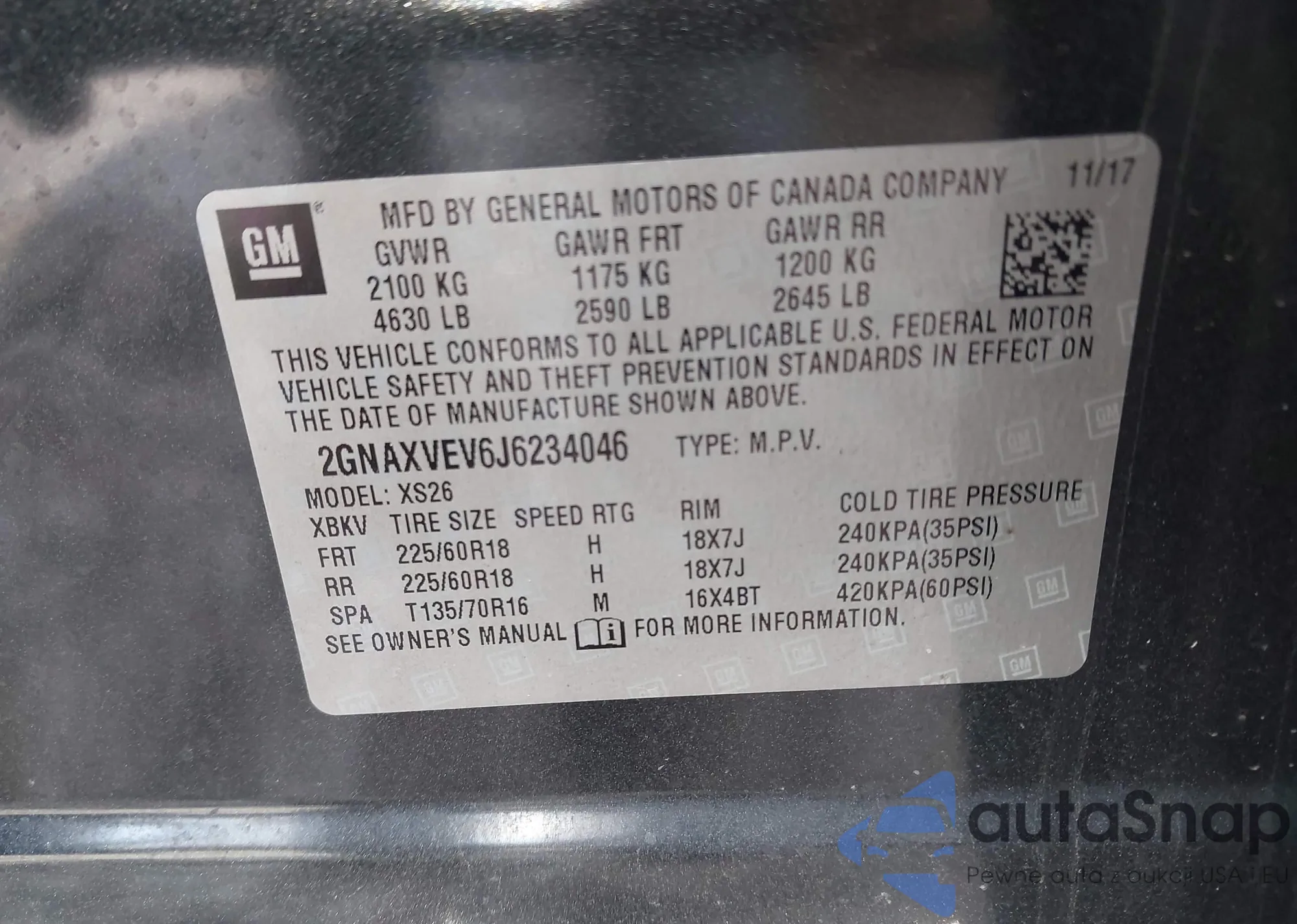 • VIN 2GNAXVEV6J6234046
