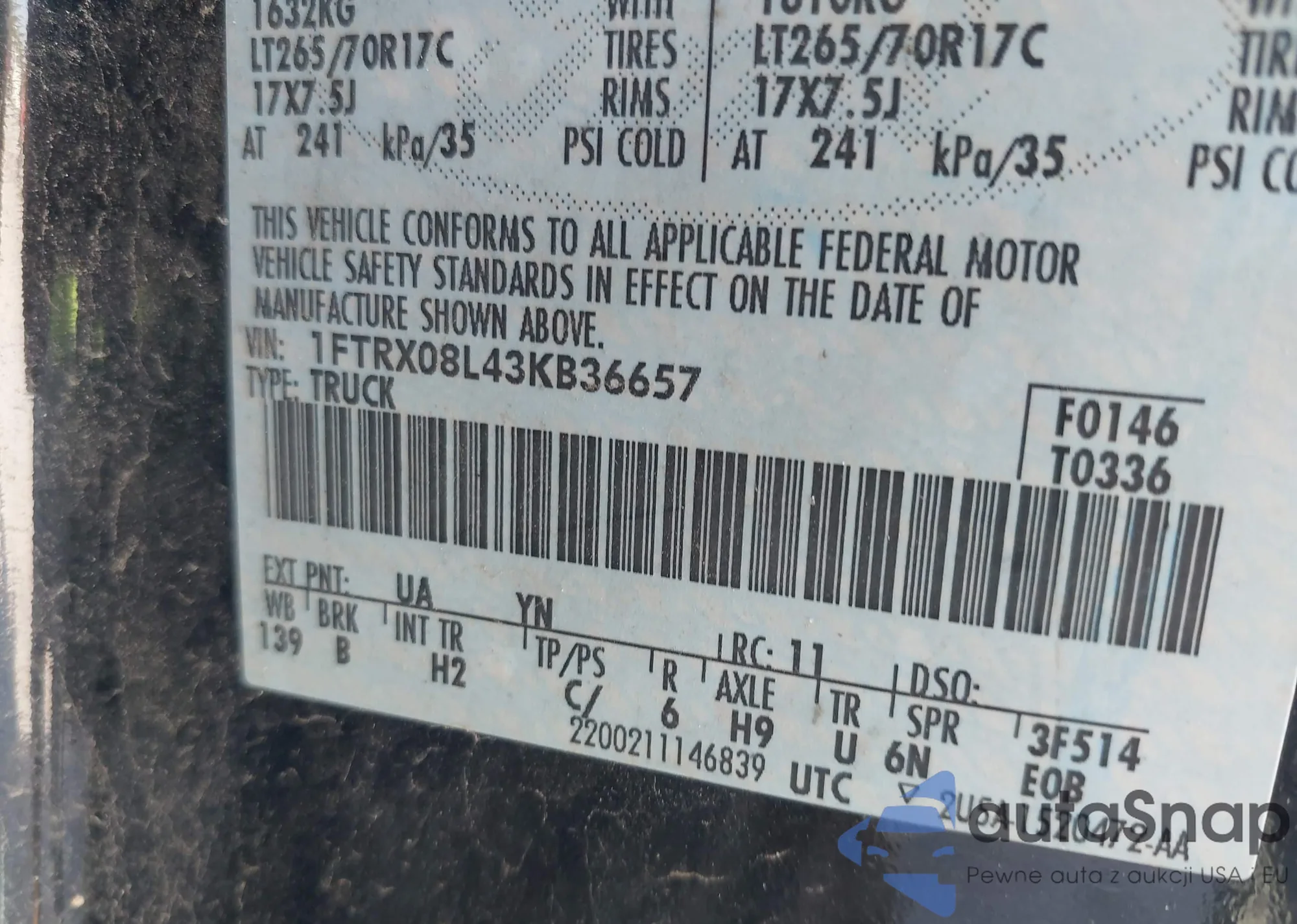 • VIN 1FTRX08L43KB36657