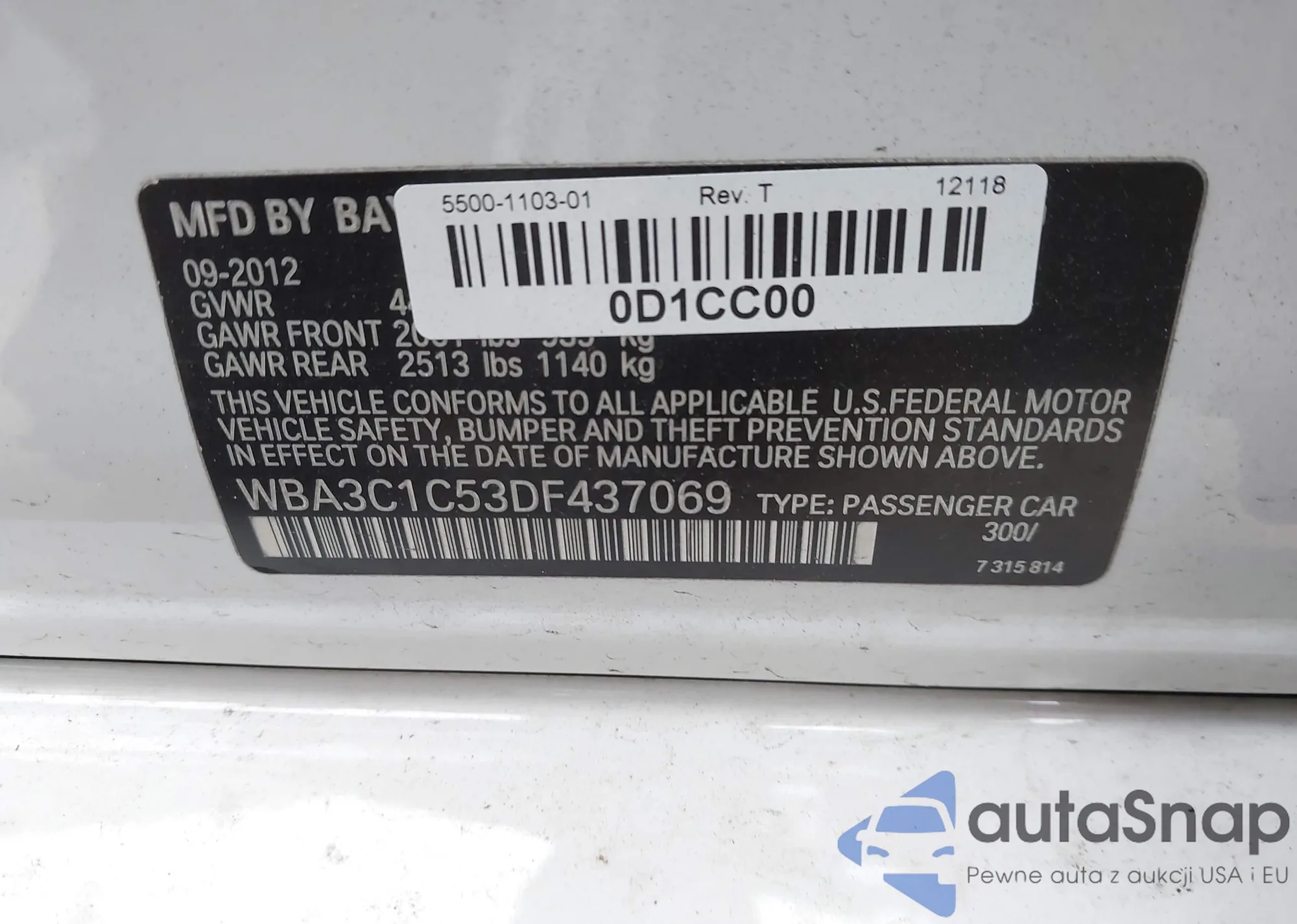 • VIN WBA3C1C53DF437069