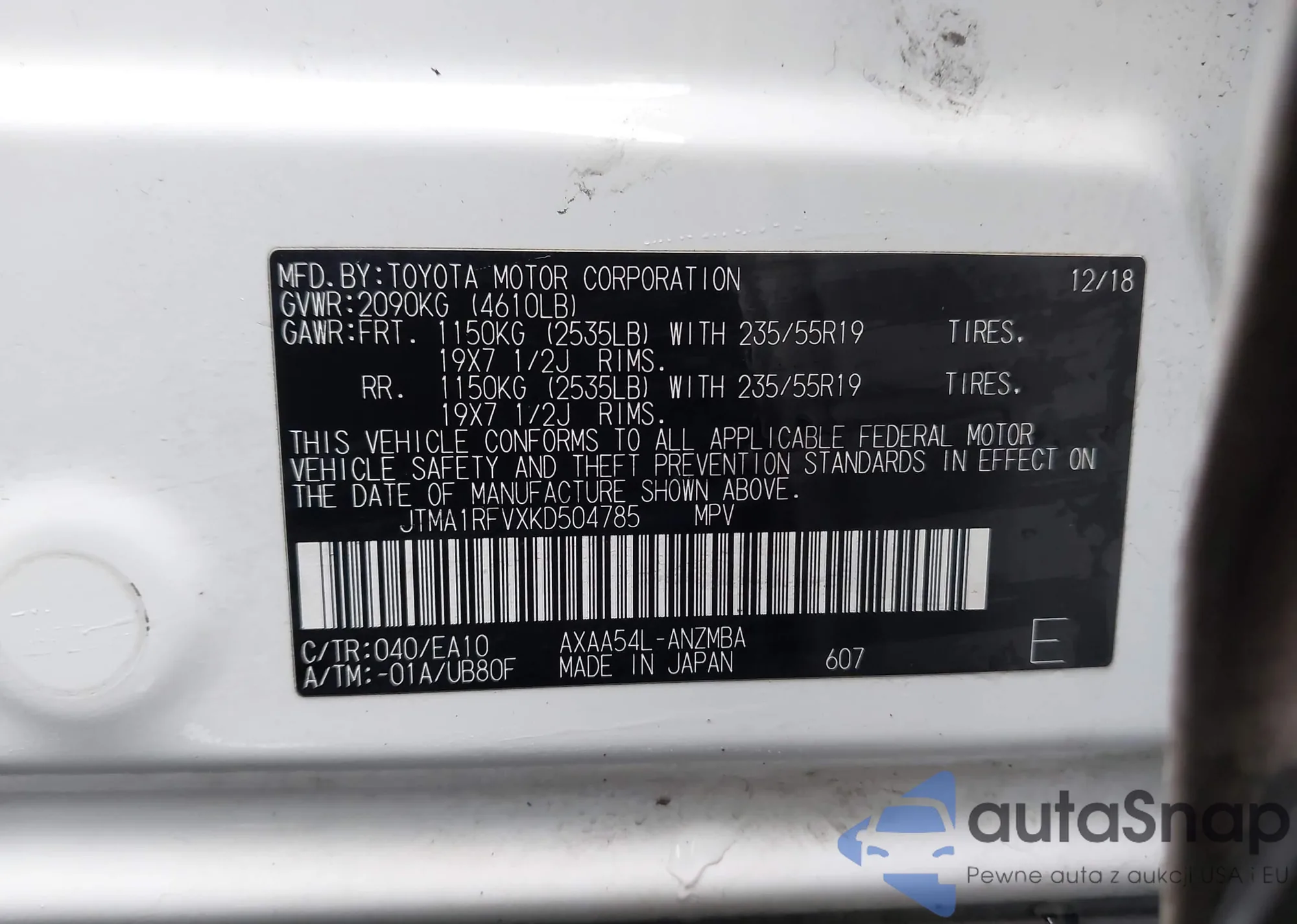 LOT: 44210209 VIN: 2T3RWRFV6LW097167