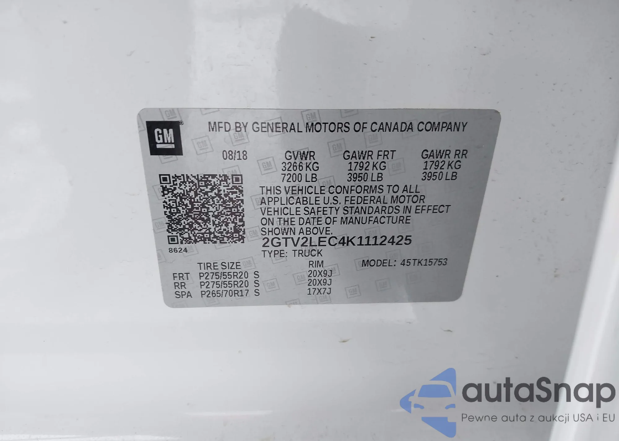 • VIN 2GTV2LEC4K1112425